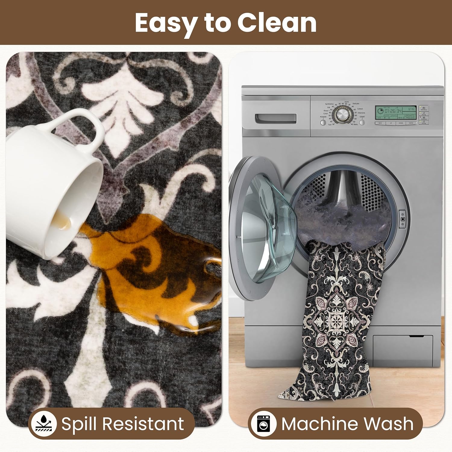 - NON-SLIP DESIGN FOR SAFETY: The washable non slip rugs is paramount, especially in busy like hallways, entryways, kitchens, bathrooms, and bedrooms. The rugsi 4x6 area rug boasts a robust rubber backing, engineered to grip firmly onto various floor surfaces, preventing unwanted slips and falls. Enjoy peace of mind knowing your loved ones are safe and secure.