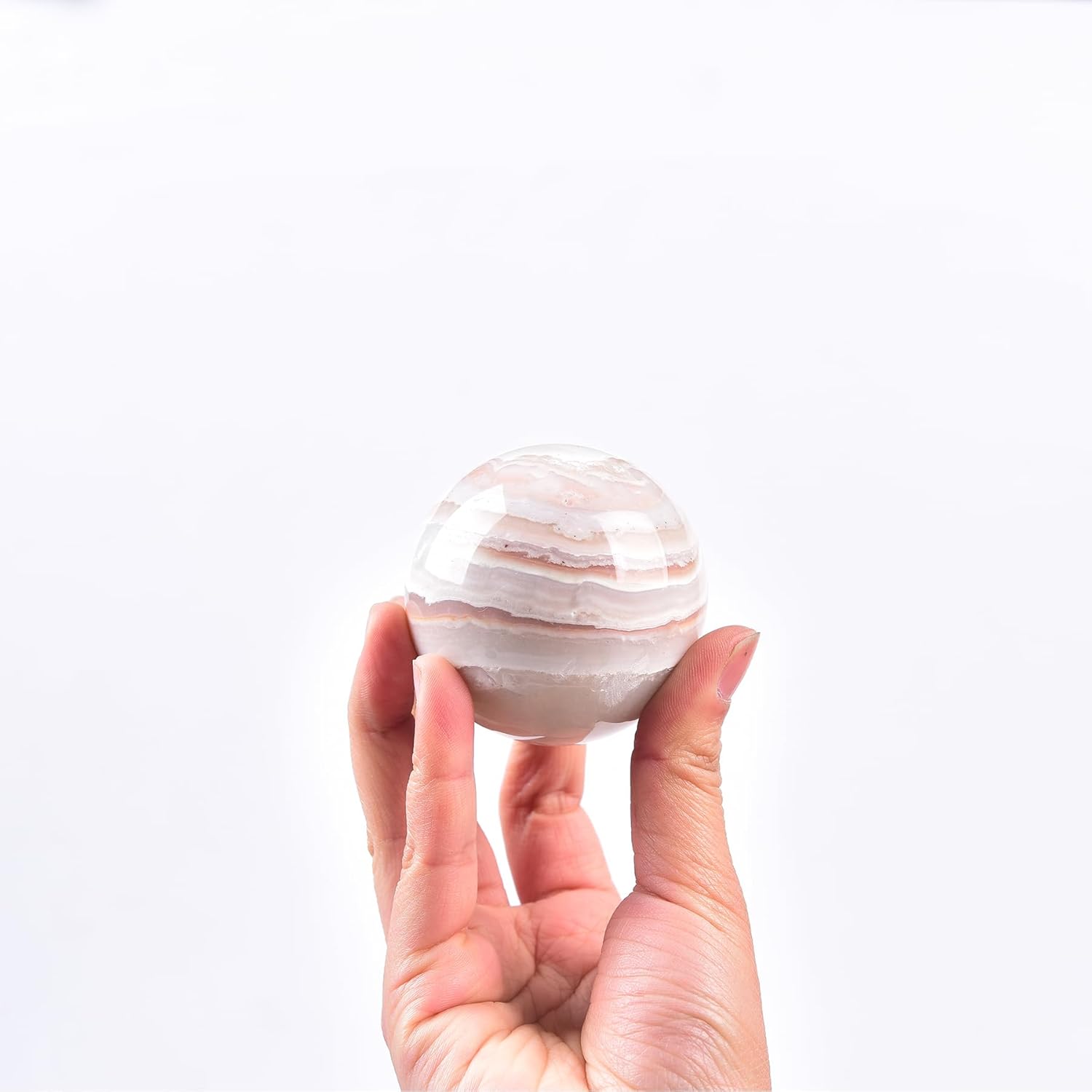 - Size:This pink agate crystal ball sphere measures between 60-70mm,with a display stand.Naturally mined crystals,retaining their natural texture,are carved with the Sphere shape.It stands out with a gentle and attractive crystal glow
