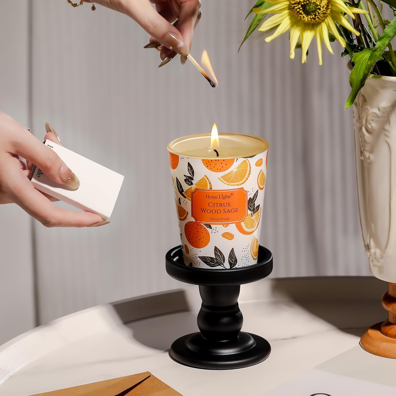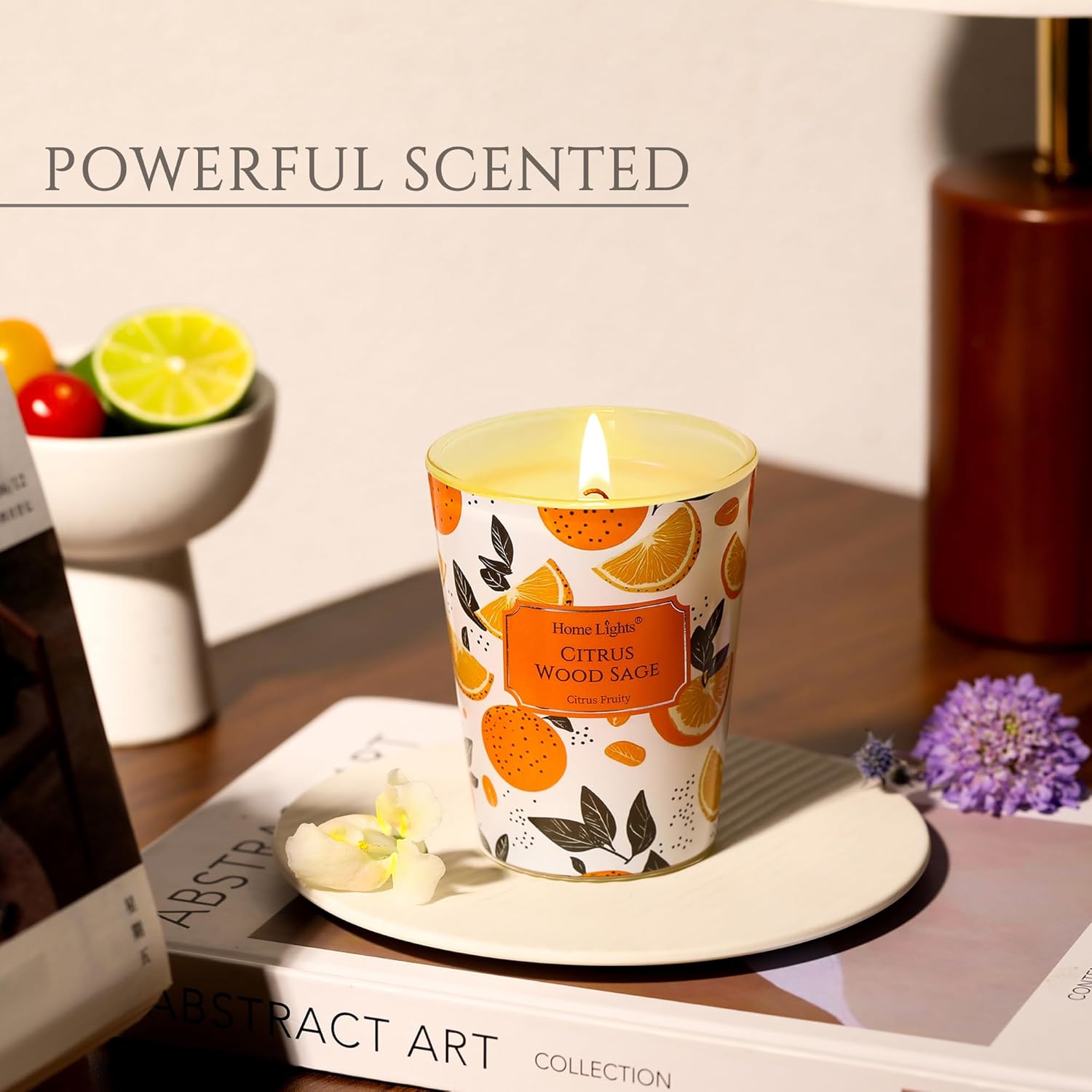 HomeLights Citrus Wood Sage Scented Candles | 6.7oz Soy Candles Eclectic Mixed Styles Large Candle Jars | Ideal Candle Gifts for Events, Home Decor Stress, Relief & Relaxation