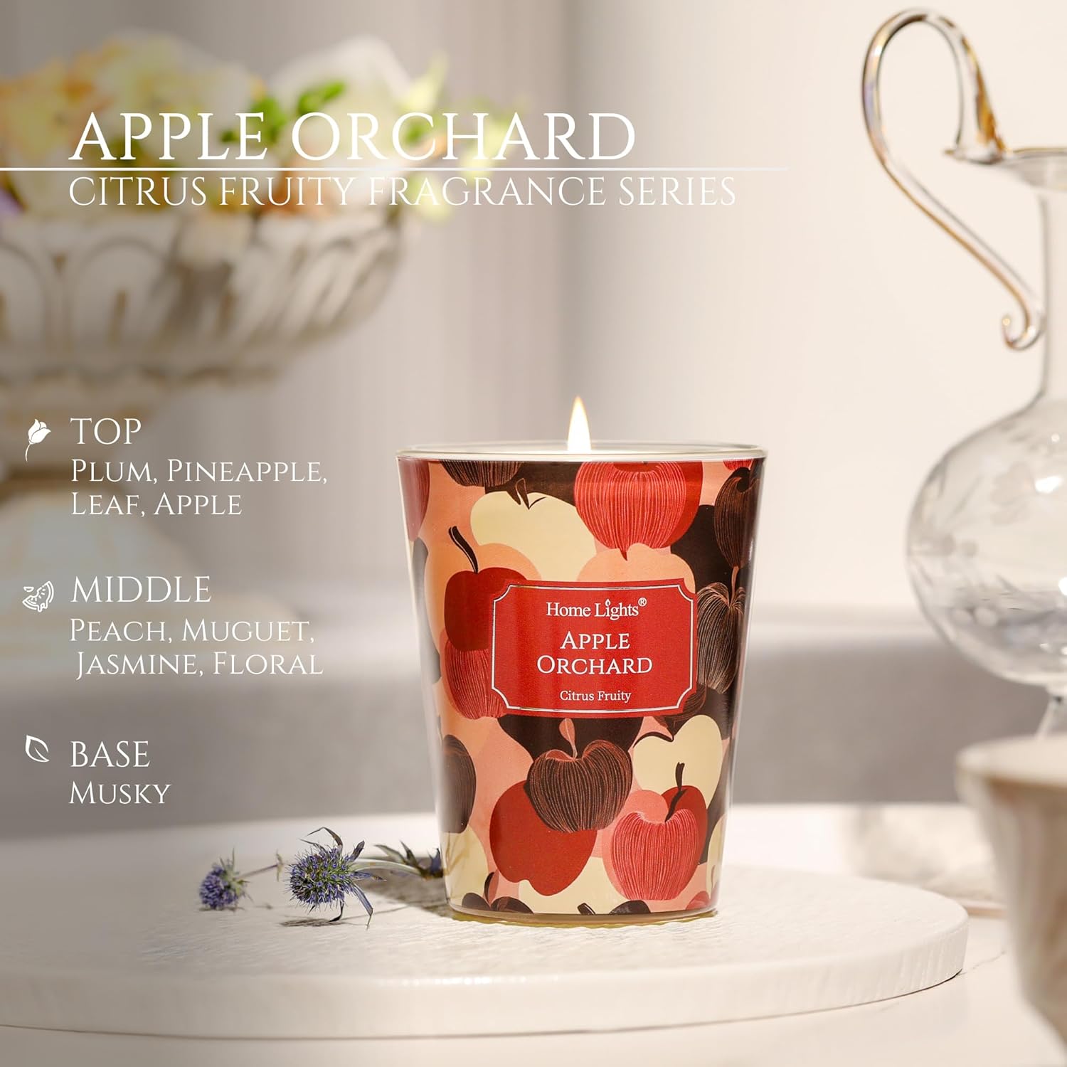 - 【Apple Orchard Aromatic Experience】This crisp, fruity scented candle blends juicy apple top notes with a floral heart of jasmine, grounded in a warm, woody base of musky. Perfect for creating cozy, inviting atmospheres in living rooms, kitchens, or autumn gatherings.
