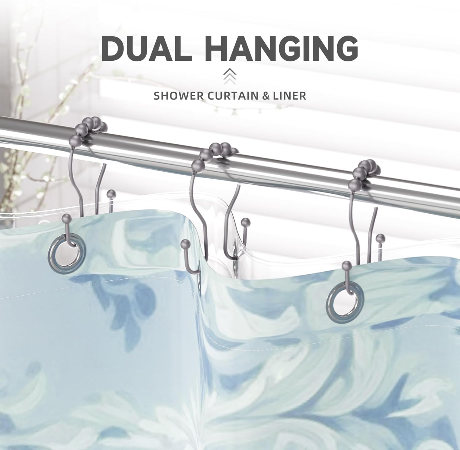 - Double shower hooks for hanging: These shower curtain double hooks have both sides to hang items and keep them balanced. The shower curtain and shower curtain liner can be hung together at the same time and will not fall off easily.