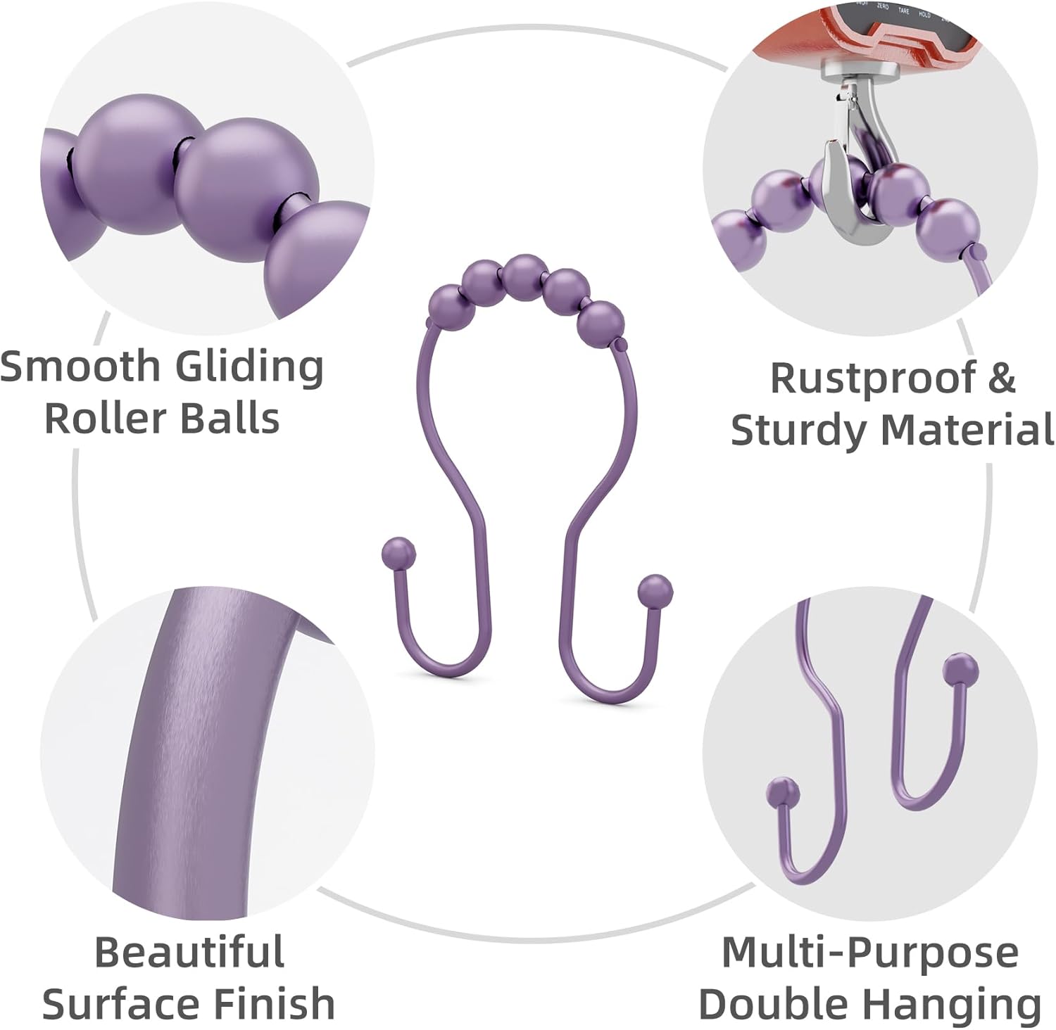 - Smooth sliding roller balls: These purple shower hooks are designed with spherical balls to ensure the shower hooks for shower curtain slide smoothly, reducing friction and avoiding scratches on the shower curtain rod.