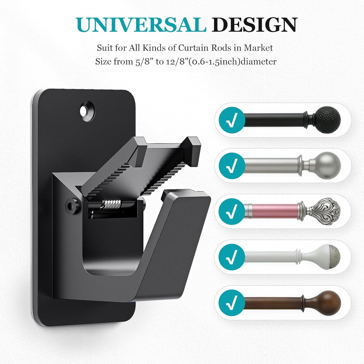 - ăNail Free Curtain Rod HooksăCrafted with premium waterproof material and anti-slip spring lock, securely holds 5/8"-1.5" rods. Black finish blends with modern bathrooms/bedrooms/kitchens decor.