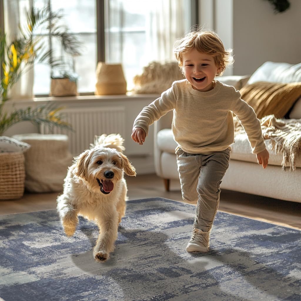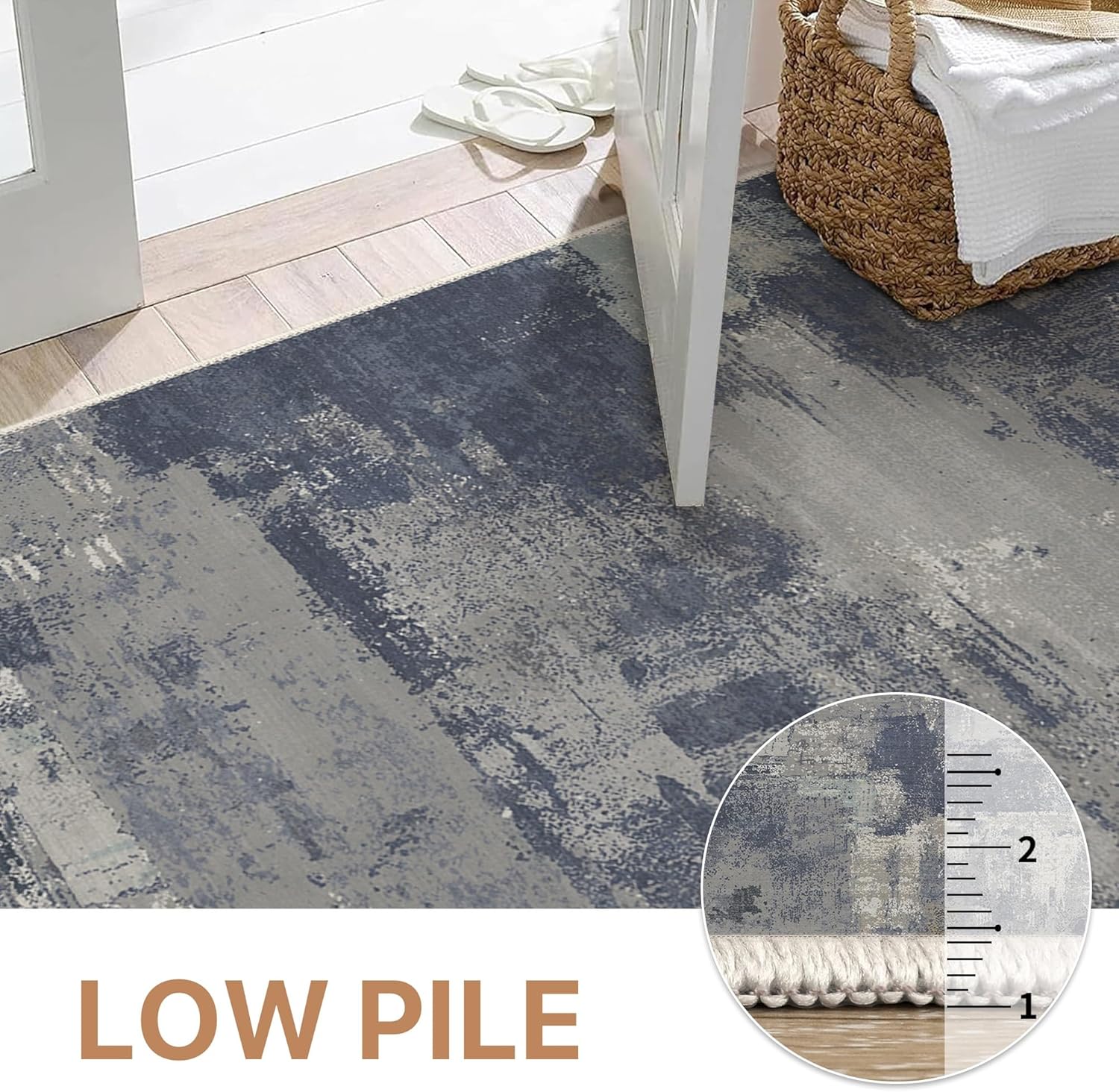 Area Rugs 8x10 for Living Room Bedroom, Modern Abstract Machine Washable Large Soft Navy Blue Rug, Low Pile Floor Carpet with Non Slip Backing for Dining Room, Harbor/Navy Blue