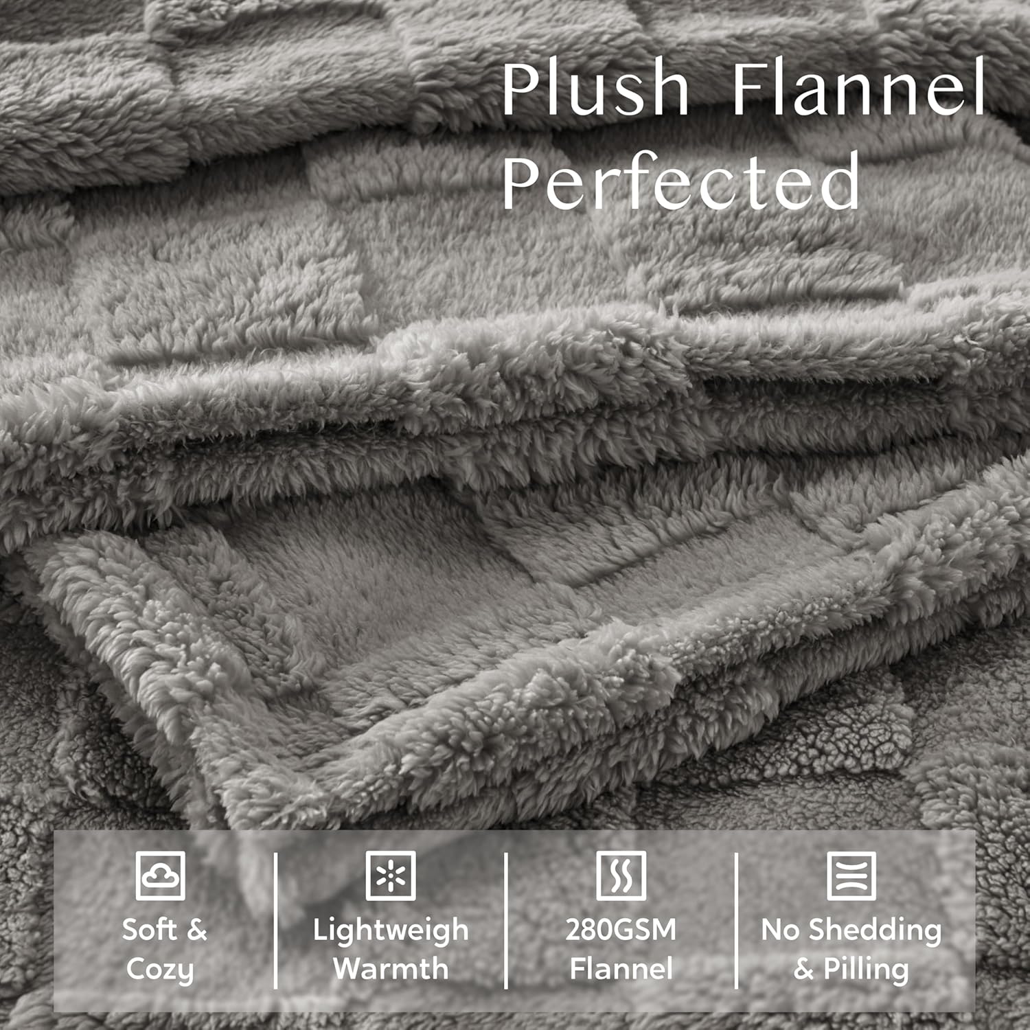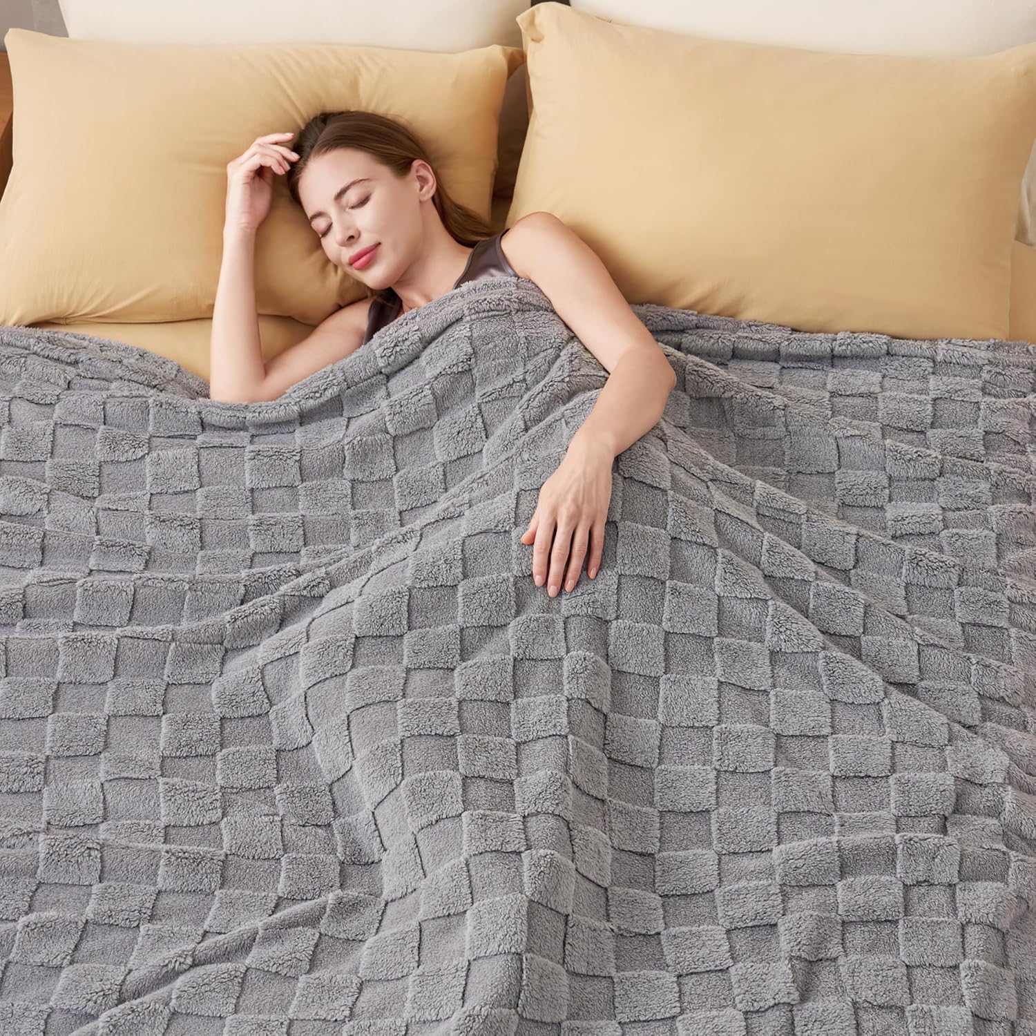 Joiedomi Queen Size Blanket for Bed, Soft Grey Fleece Checkered Blankets Gifts for Women Mom Girls, 280GSM Cozy Cute Soft Throw Home Room Decor Aesthetic Gifts 90x90 Inches