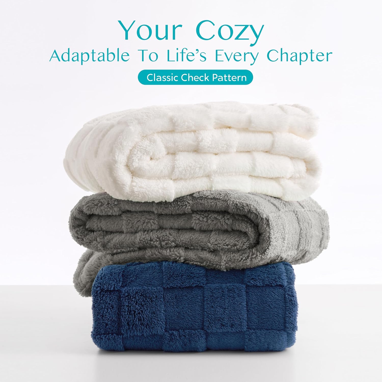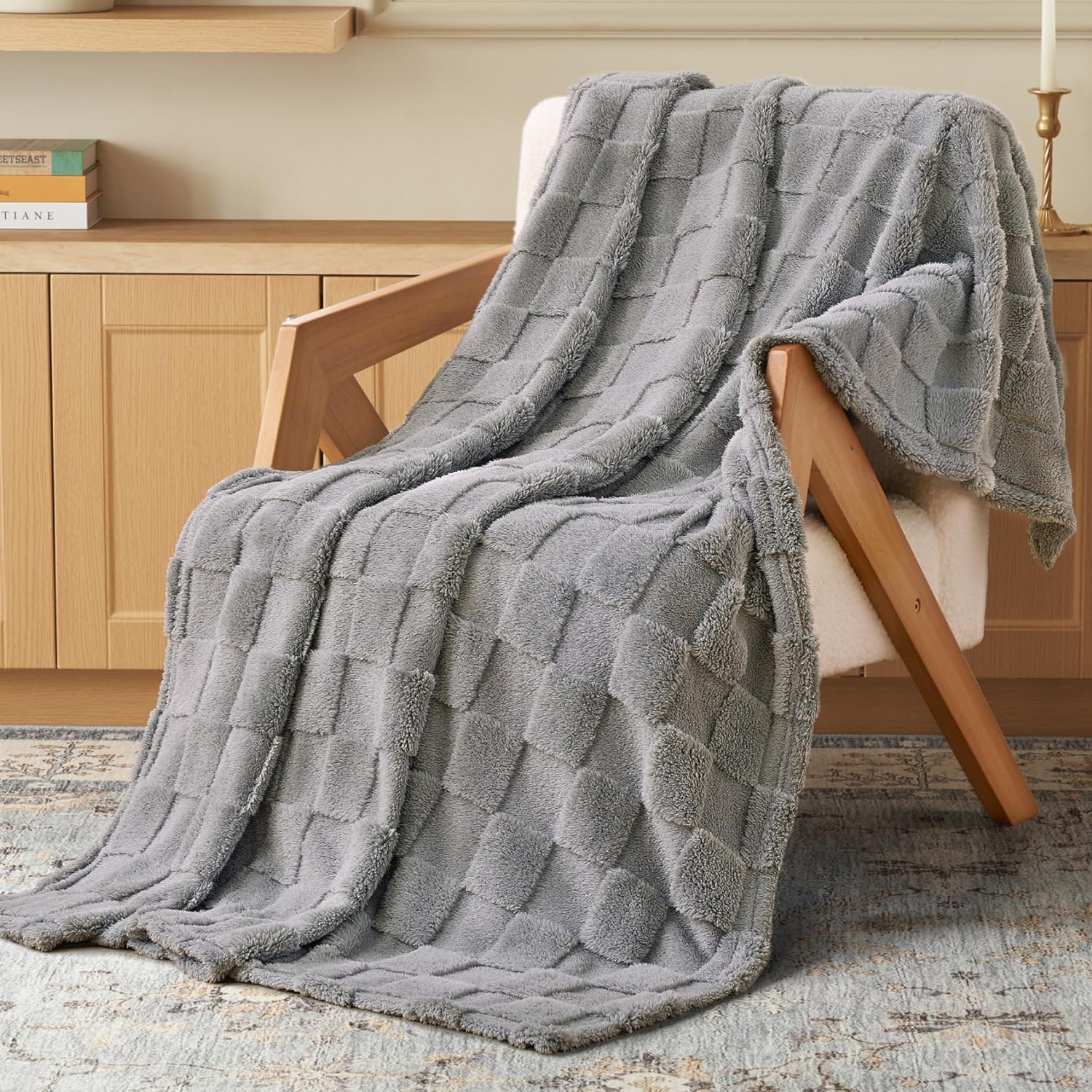 Joiedomi Throw Blanket for Couch, Soft Grey Fleece Checkered Blankets Gifts for Women Mom Girls, 280GSM Cozy Cute Soft Throw Home Room Decor Aesthetic Gifts 50x60 Inches