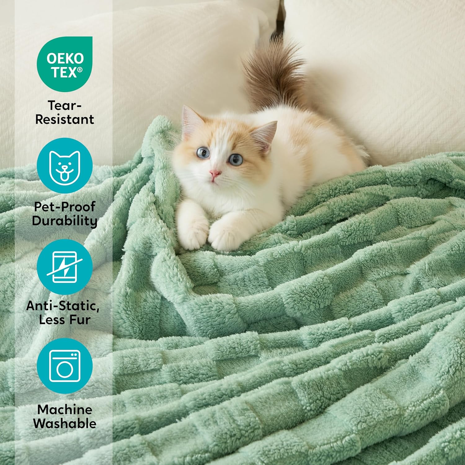 Joiedomi Throw Blanket for Couch, Soft Sage Green Fleece Checkered Blankets Gifts for Women Mom Girls, 280GSM Cozy Cute Soft Throw Home Room Decor Aesthetic Gifts 50x60 Inches
