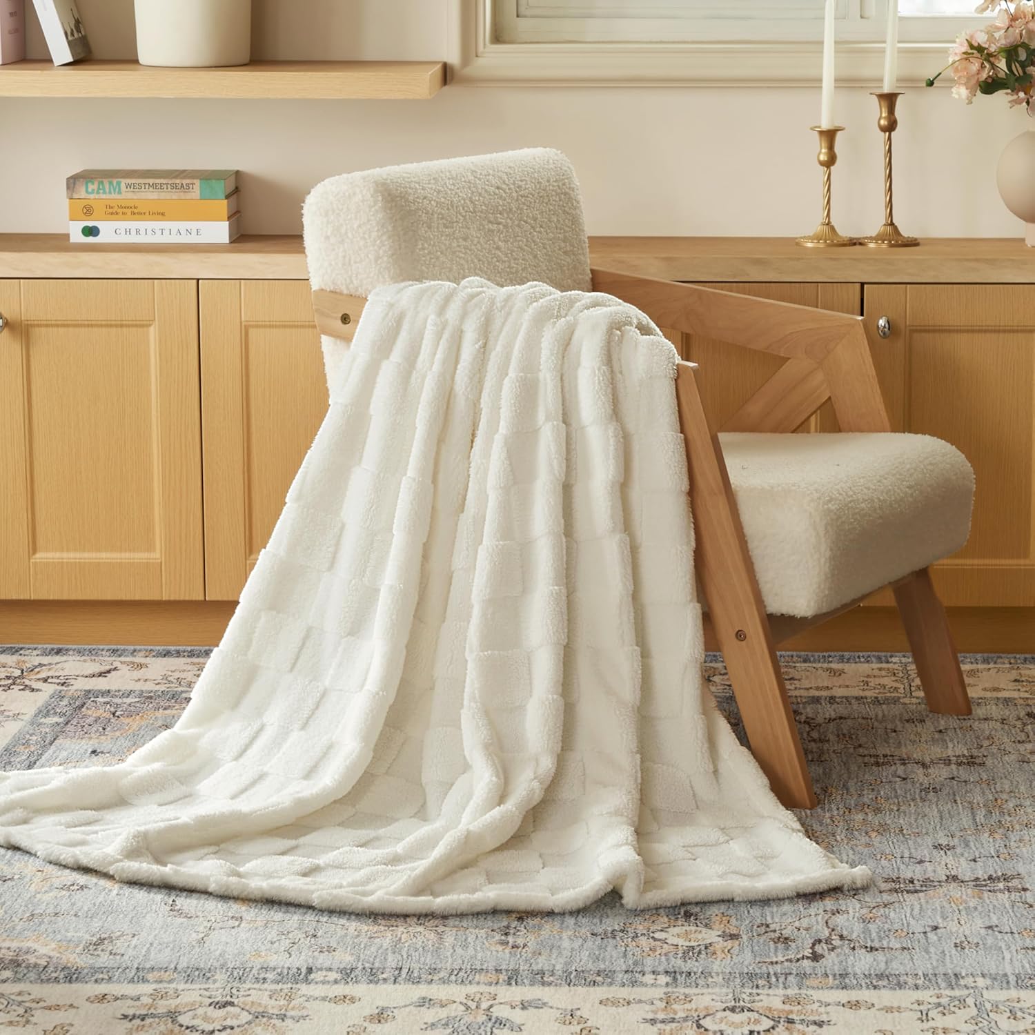 Joiedomi Twin Blanket for Bed, Soft White Fleece Checkered Blankets Gifts for Women Mom Girls, 280GSM Cozy Cute Soft Throw Home Room Decor Aesthetic Gifts 60x80 Inches