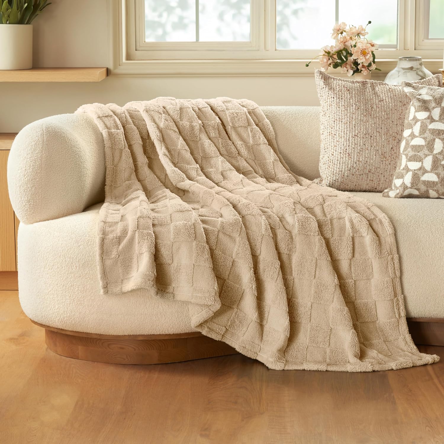 Joiedomi Twin Blanket for Bed, Soft Brown Fleece Checkered Blankets Gifts for Women Mom Girls, 280GSM Cozy Cute Soft Throw Home Room Decor Aesthetic Gifts 60x80 Inches