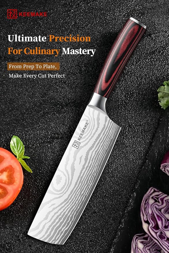 - Easy to Clean: Rust-resistant pattern on the knife, reduces food friction, making the vegetable cleaver easy to clean and maintain. Hand wash only with warm water and mild soap, then dry with a soft towel to maintain its razor-sharp edge