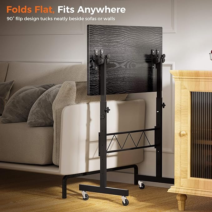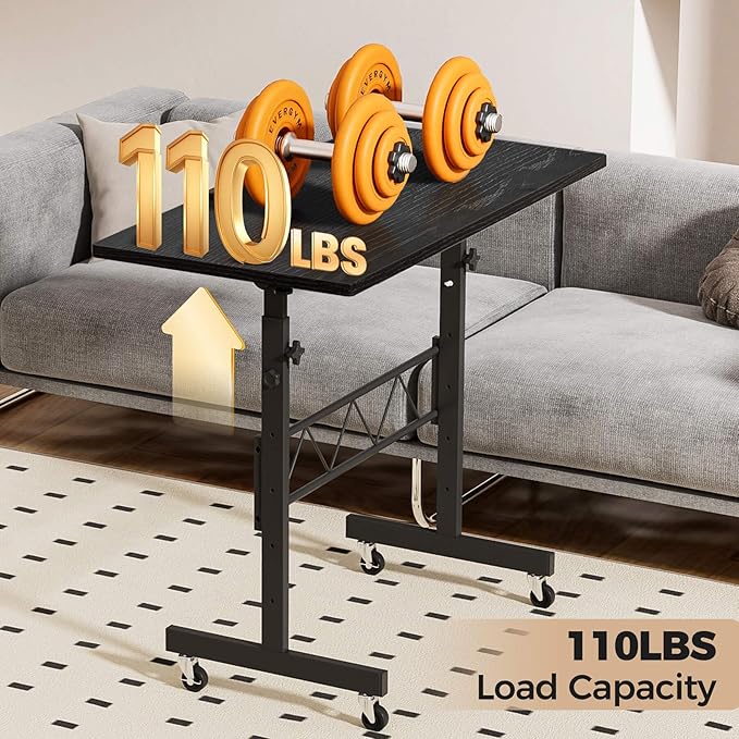 - 【Portable Mobile Desk】Smooth PU rubber wheels roll quietly while protecting hardwood/tile surfaces from scratches. Easily transition between workspaces with one-touch wheel locks that keep your desk rock-steady during use. Perfect for noise-sensitive environments like home offices or shared spaces - move freely without disruptions