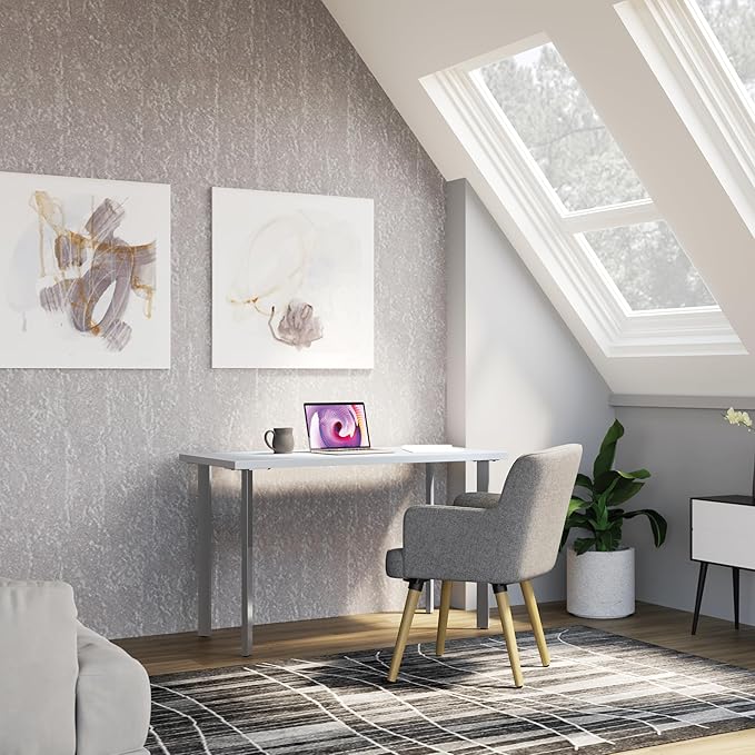 HON Coze Home Office Desks, Sturdy Table Computer Desk, 48", White Top, Silver Base