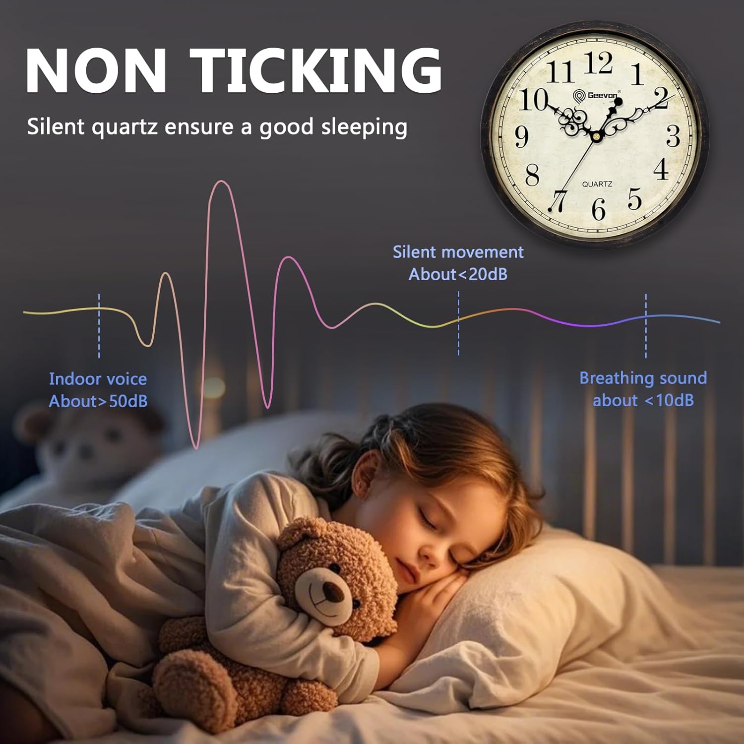 Geevon Vintage Wall Clock 10" Silent Non-Ticking Retro Round Quartz Battery Operated Decorative Clock for Kitchen, Living Room, Bedroom, Office, Classroom
