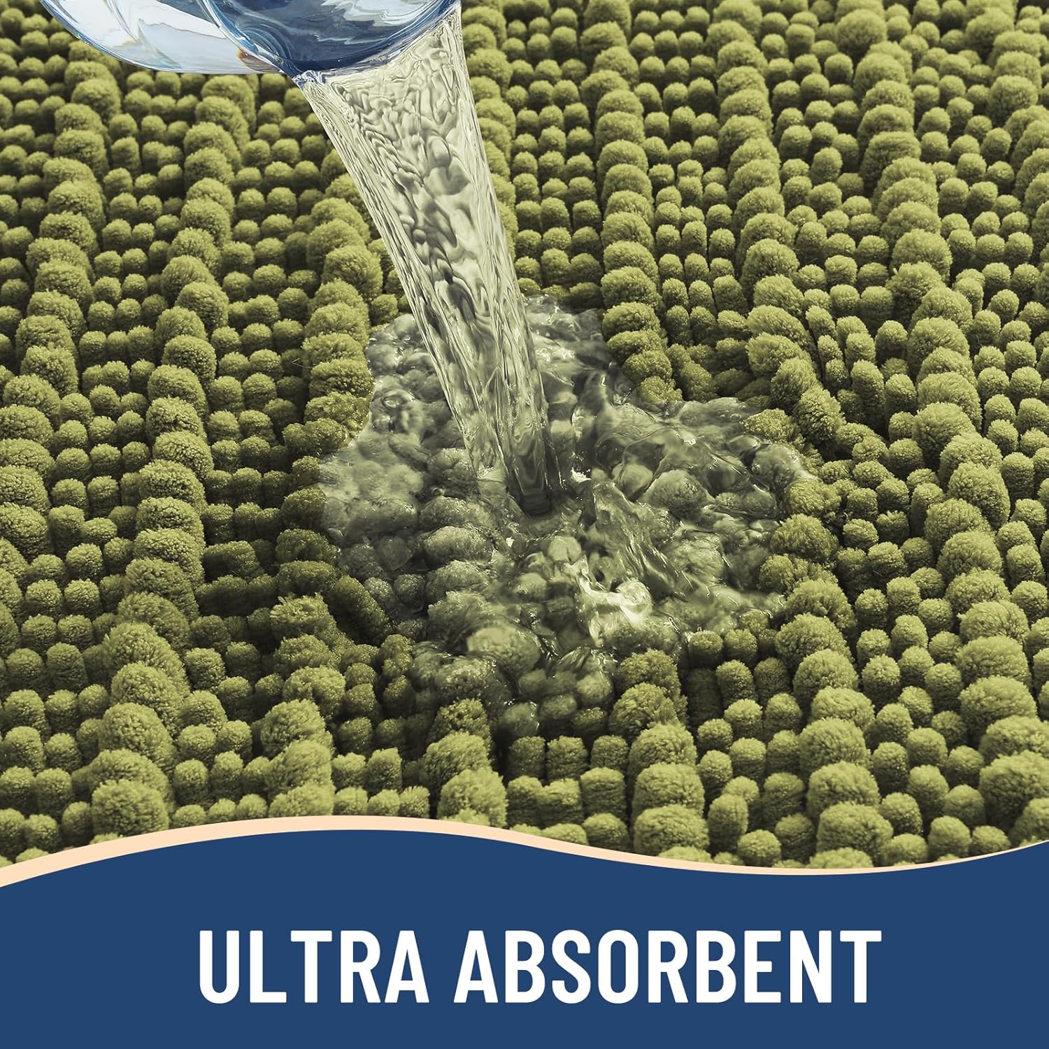 Arotive Luxury Chenille Bathroom Rug Mat, Extra Soft Thick Absorbent Shaggy Bath Rugs, Non-Slip Machine Wash Dry, Plush Bath Mats for Bathroom, Shower and Tub, 36x24, Willow Green