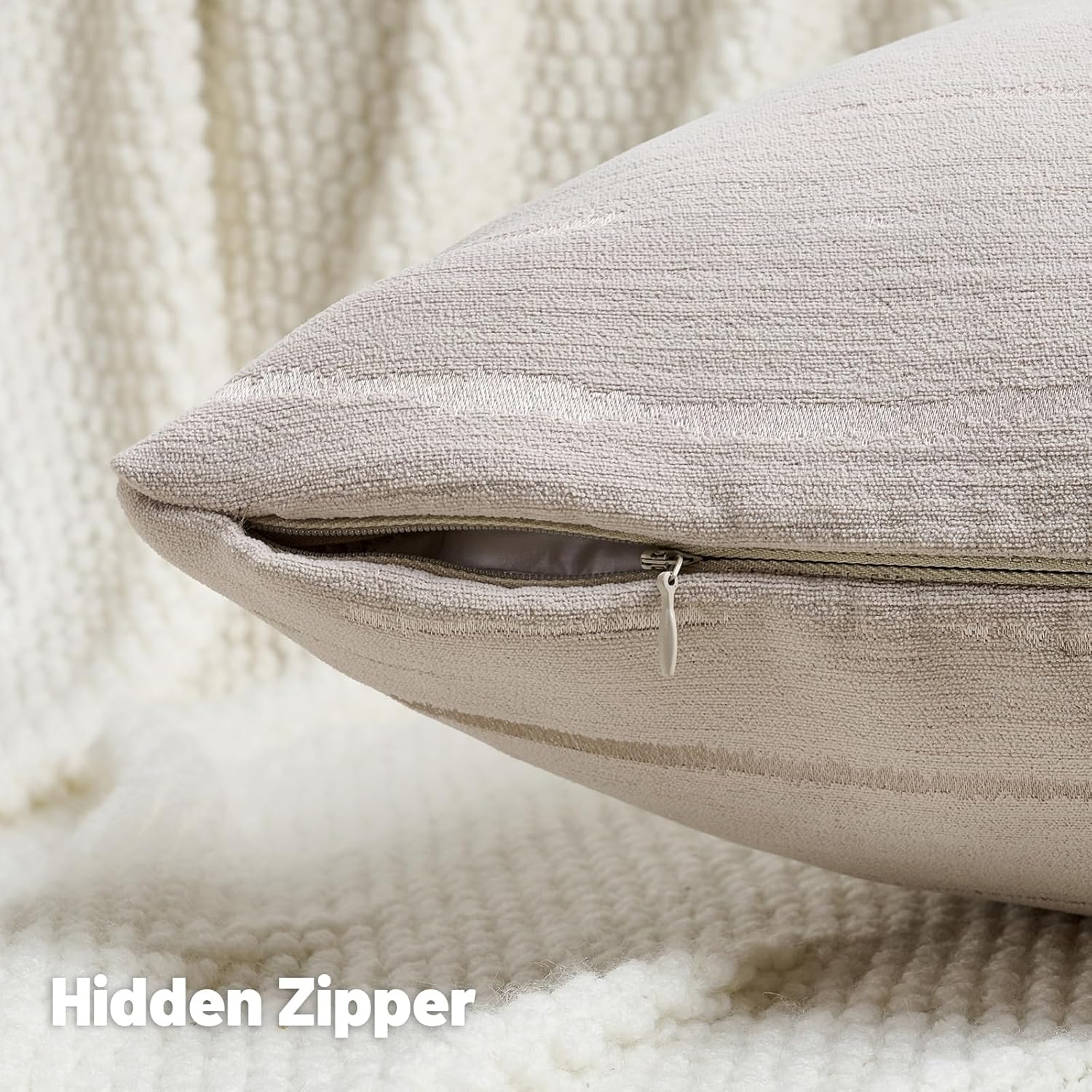 - This covers are crafted from premium chenille fabric, renowned for its comfort, softness, durability, and luxurious feel. This high-quality fabric features an embossed stripe pattern on both sides. The exquisite embossing technique gives the fabric a tactile texture, delivering ultimate cozy and elegant style to these exquisite decorative cushion covers.