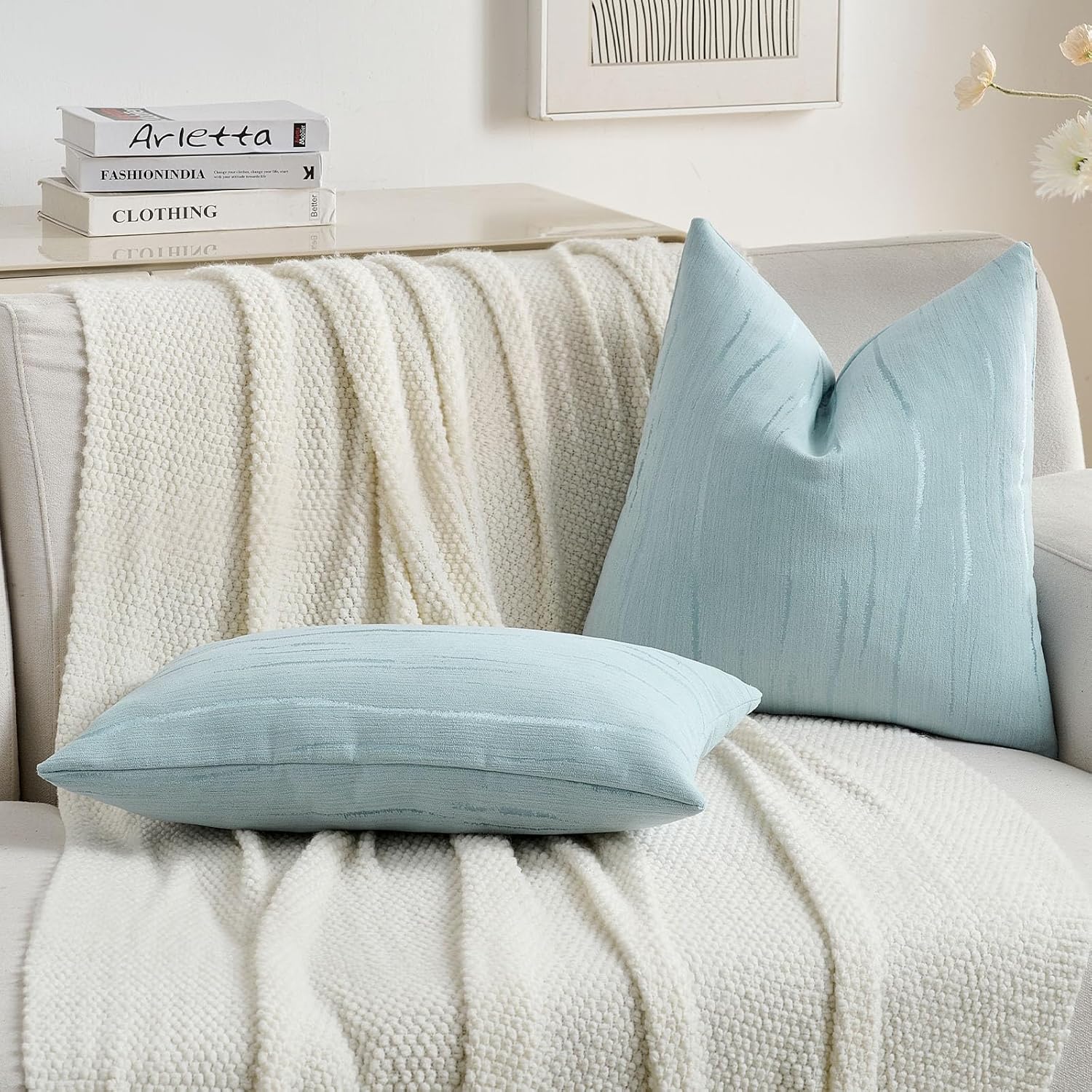 FUTEI Light Blue Chenille Decorative Throw Pillow Covers 12x20 Inch Set of 2,Soft Embossed Striped Textured Lumbar Pillow Cases,Modern Home Decor for Couch Bed Living Room
