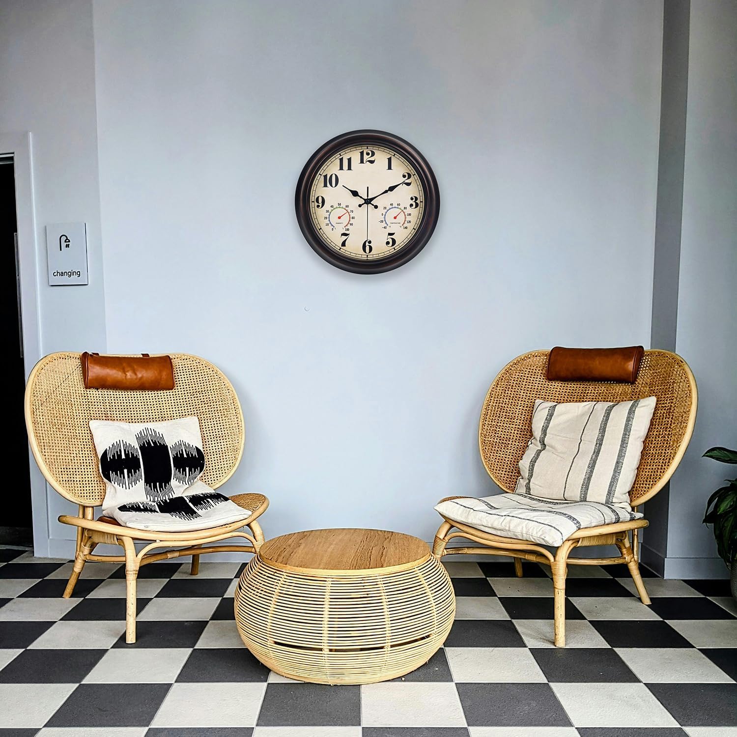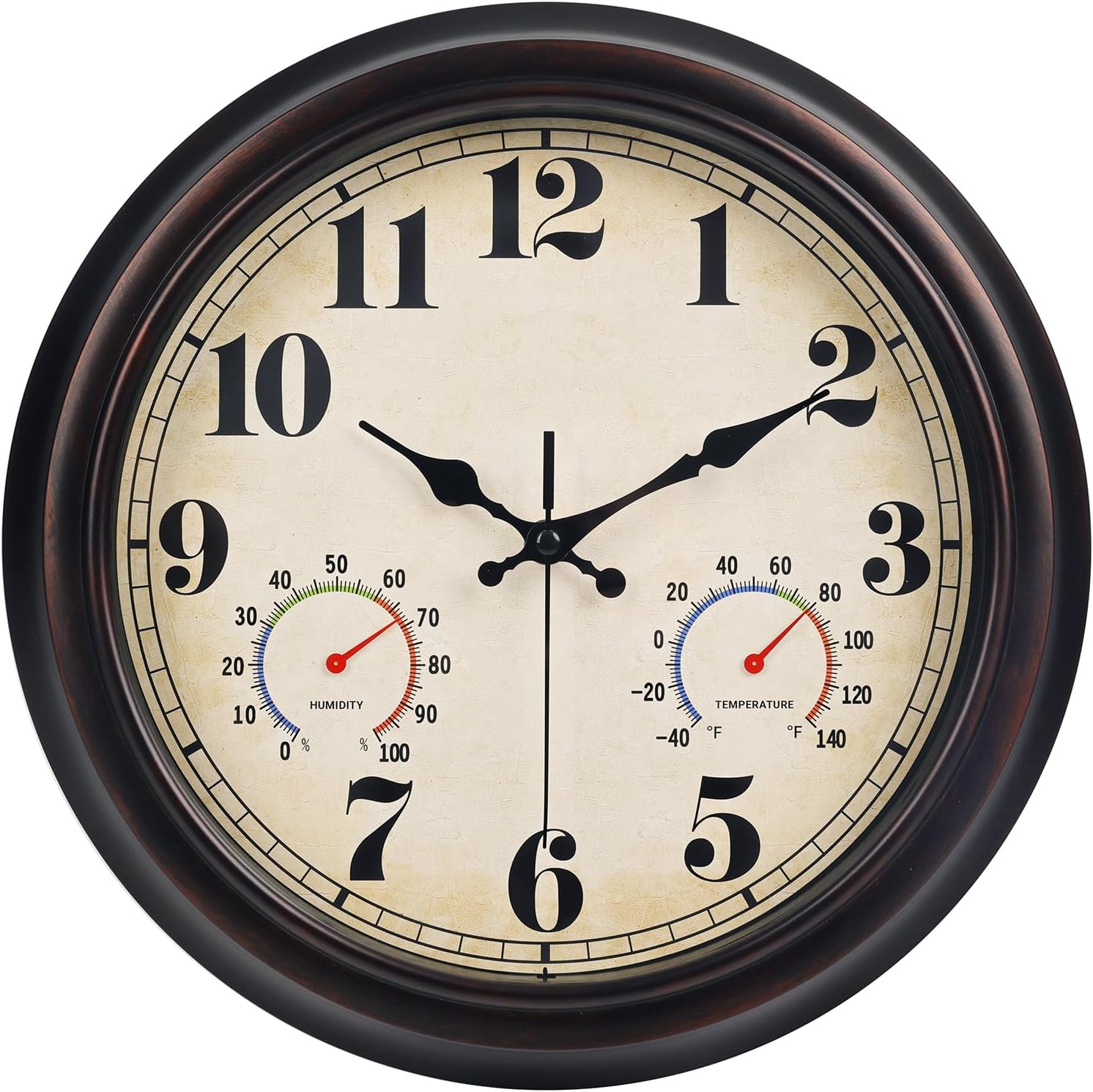 45MinST 13 Inch Red-Brown Vintage Waterproof Wall Clock with Thermometer & Hygrometer, Large Silent Numerals & Accurate Timekeeping for Indoor & Outdoor(Garden,Porch,Pool)