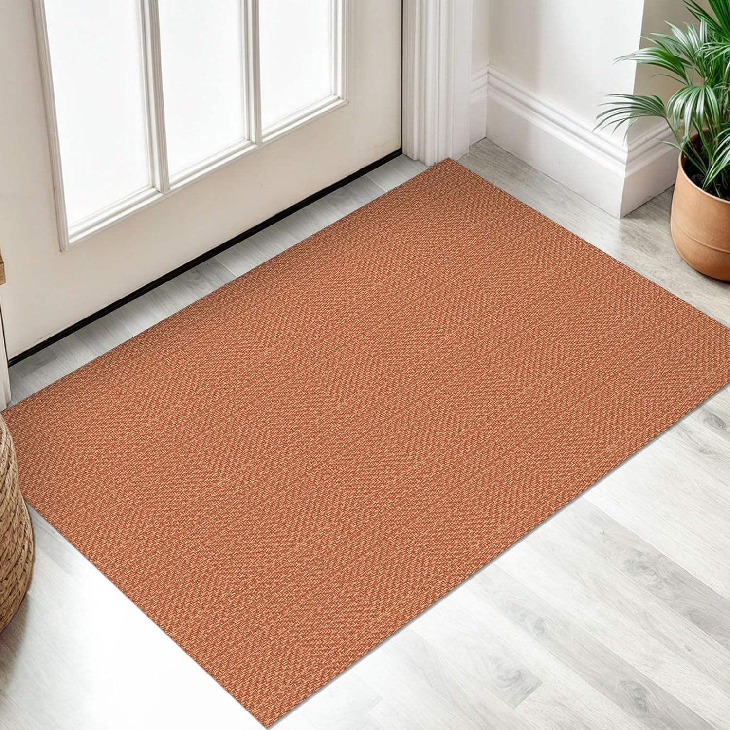IOHOUZE Small Area Rug 2x3 Washable Woven Rugs for Entryway Non Slip Rubber Backed Front Door Rugs Indoor Doormat Throw Rug Floor Carpet for Entrance Kitchen, Rustic Orange
