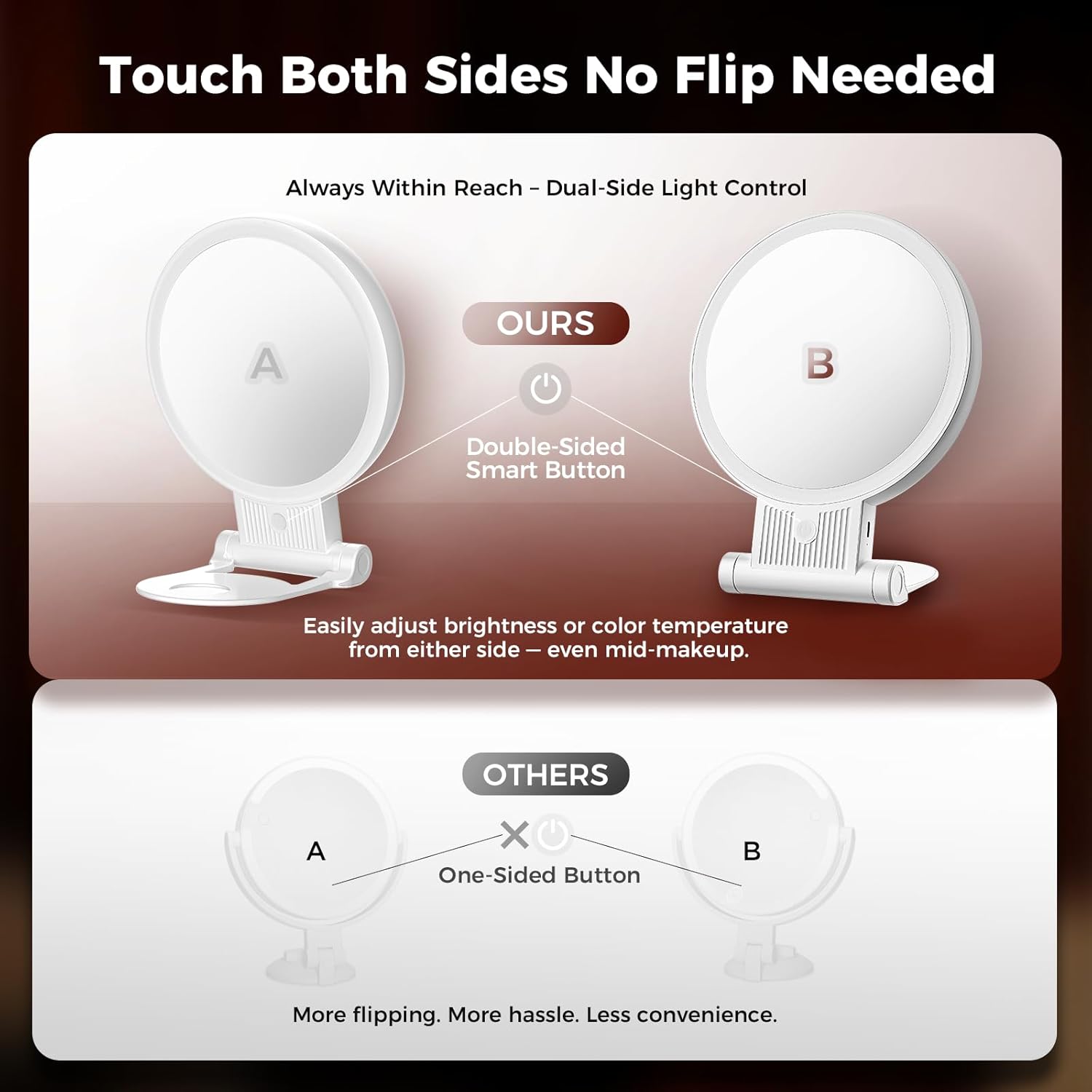 - 【Dual-Sided Independent Lighting – Smarter Control】Unlike most mirrors with a single switch, ours gives you dual light control—each side has its own power button, allowing you to operate them independently. No more unnecessary light toggling or confusion. Just precise control at your fingertips.