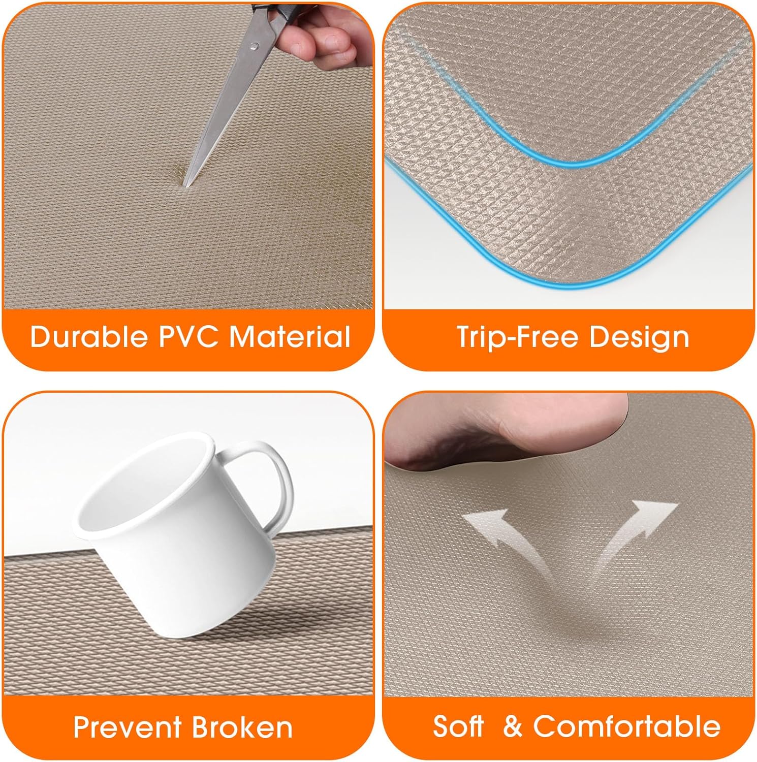 Kitchen Mat, Cushioned Thick Floor Comfort Mat, with Non-Slip Bottom, Waterproof & Stain Resistant & Easy Clean, Standing Desk Mat for Kitchen, Sink, Office (17.3''x28'', Khaki)