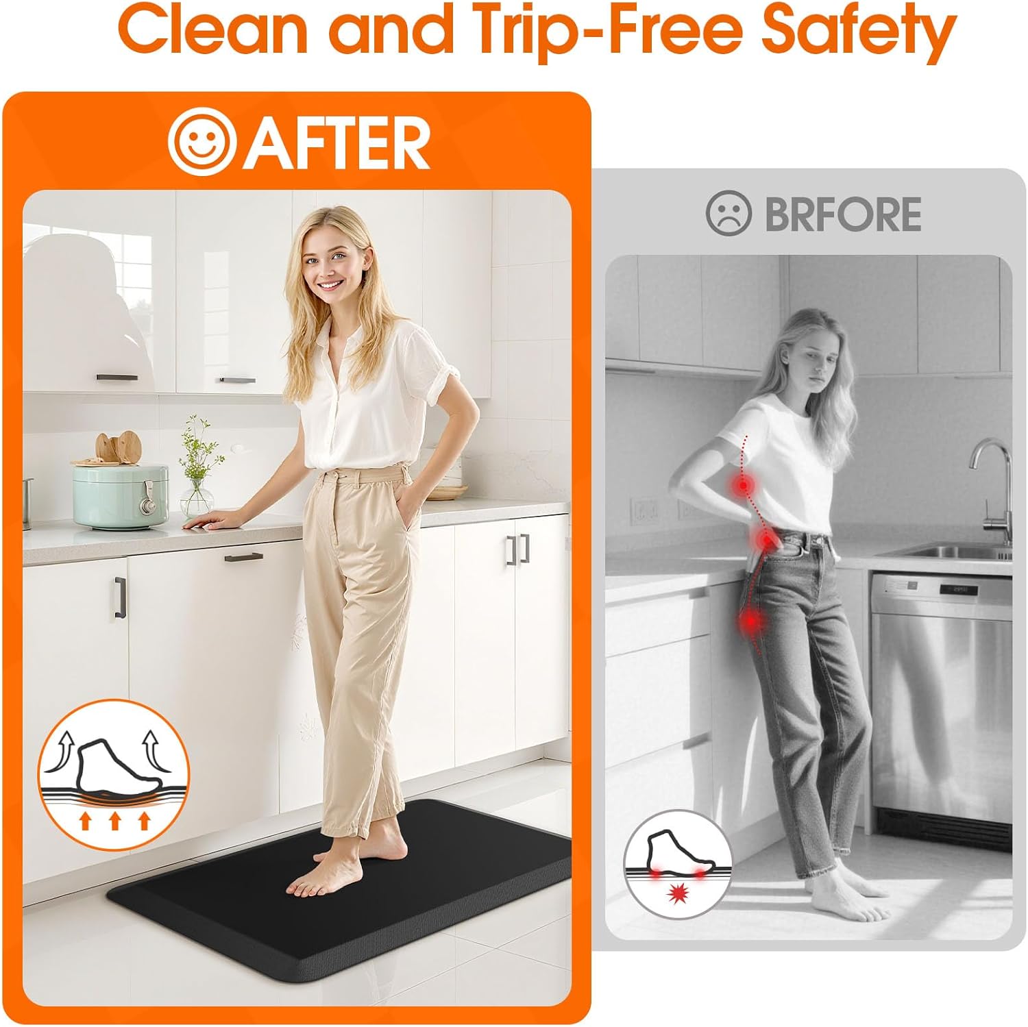 Kitchen Mat, Cushioned Thick Floor Comfort Mat, with Non-Slip Bottom, Water & Stain Resistant, Easy Clean Standing Desk Mat for Kitchen, Sink, Office (17.3"x28", Black)