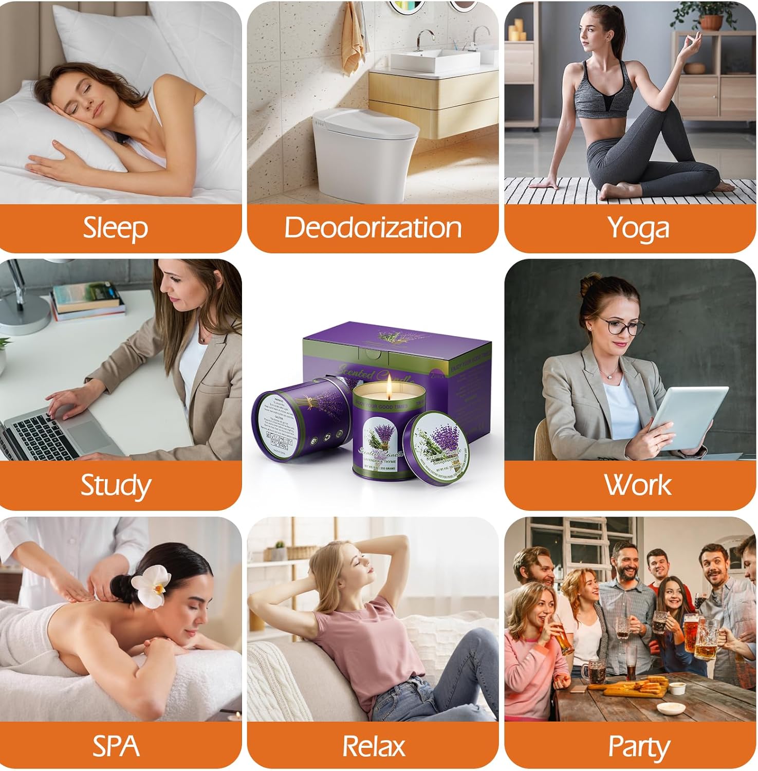 - ⨠Transform Your Space Instantly: Elevate any room's mood instantly! Whether setting a calming tone for sleep, boosting focus during work or study, enhancing your relaxation routine, adding luxury to your SPA bath, or energizing a party atmosphere, this versatile lavender and thyme aromatherapy candle is your essential ambient home candle solution.