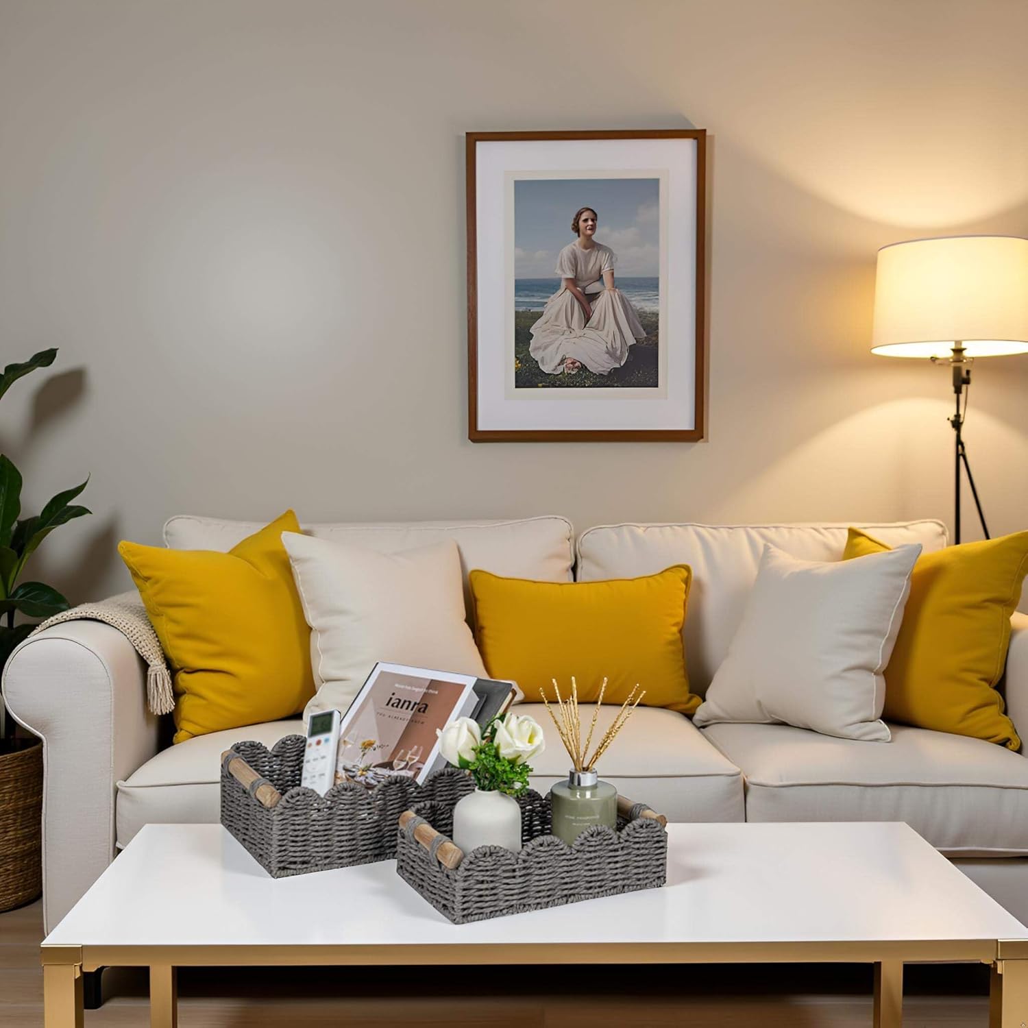 - MULTIPURPOSE USE: Our scalloped edge paper rope decor basket add personality and charming addition to home, bedroom, living room, bathroom, nursery and space-floating shelves, over toilet storage shelf, end table, nightstand,storage cabinet, bookcase and more, also serve well to small items, beauty products, cleaning supplies, and more
