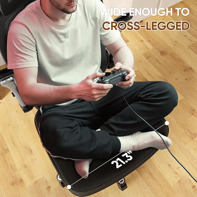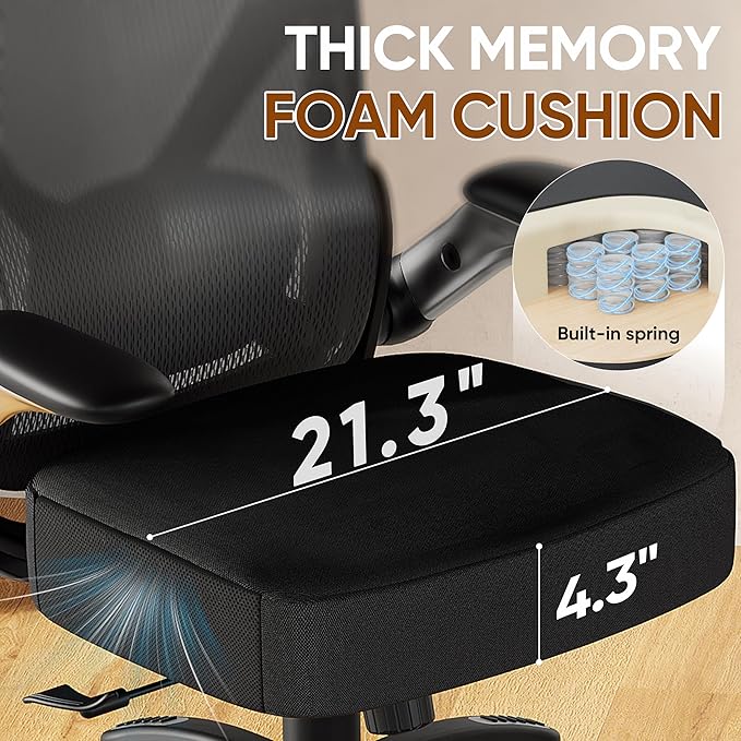 - 【4.3IN Thick Cushion for All-Day Comfort】The 21.3''W x 20.6''D oversized seat includes 4.3'' thick high-density foam layered with a built-in spring package, offering a sofa-like bounce and superior pressure relief. Breathable and durable, this wide cushion ensures maximum comfort even during extended sitting sessions.
