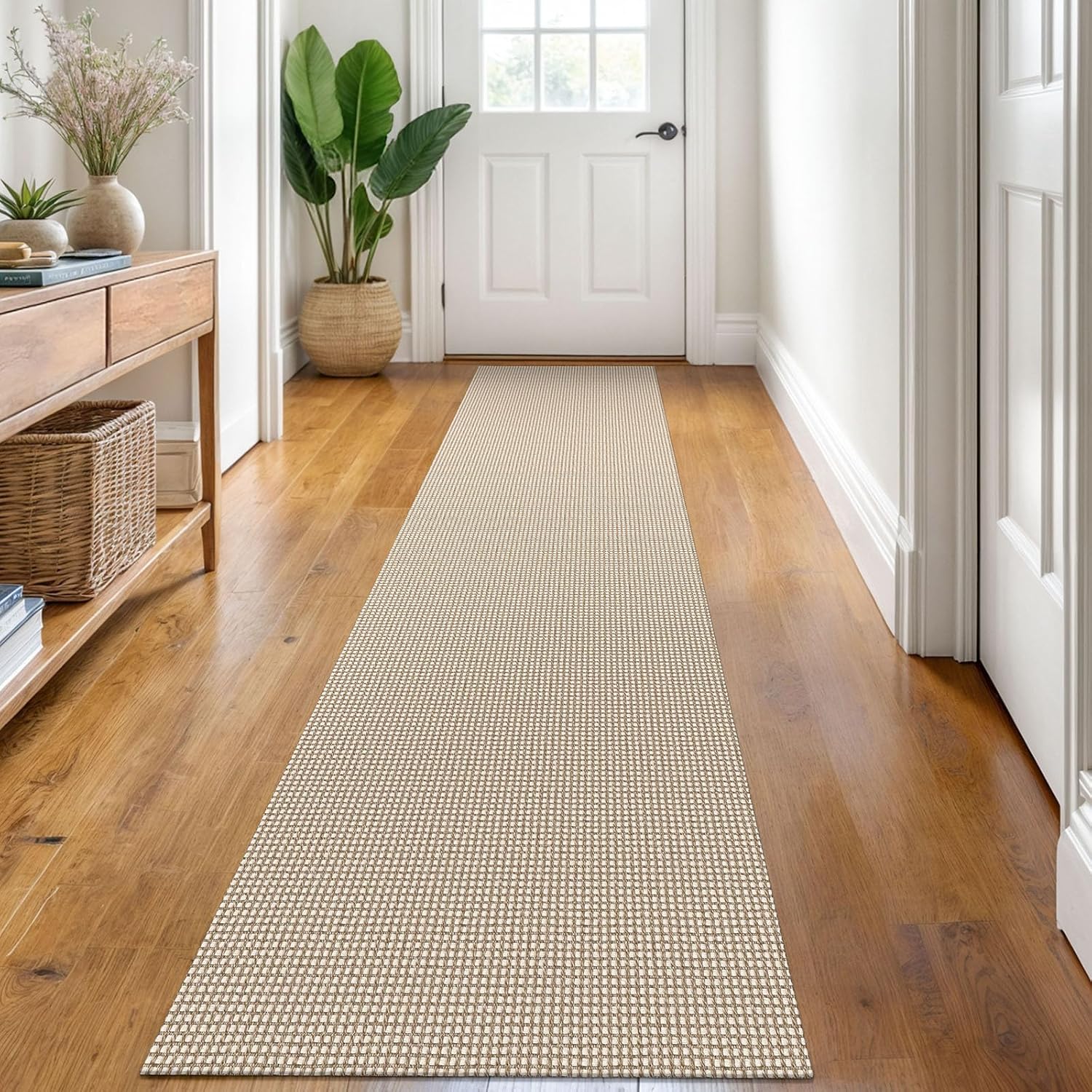 KOZYFLY Runners for Hallways 2x8 ft Washable Kitchen Runner Non Slip Rubber Backed Hall Runners Cotton Entryway Runner Rugs Floor Carpet for Indoor Backdoor Bedroom Kitchen, Ivory/Khaki