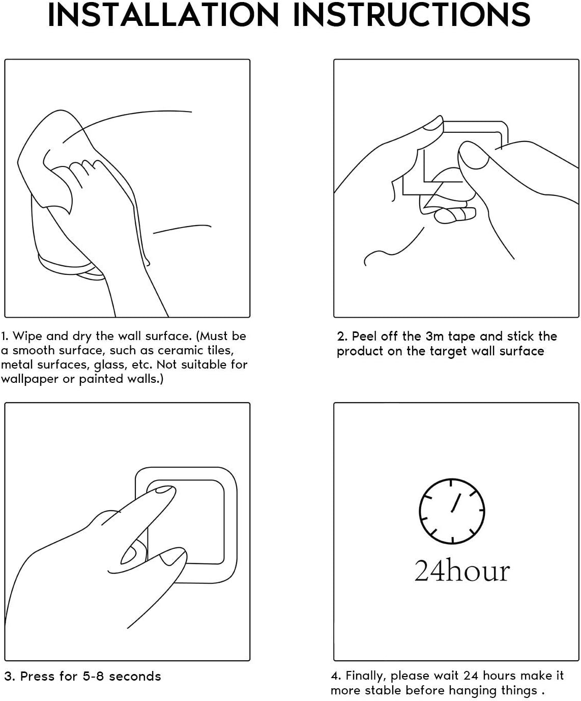 - 【Easy Assembling】Do did not need to drill the hole in the wall. Just tear off the self-adhesive film, stick the Gold towel hook on a smooth wall (must be metal surface, marble, tile, glass, etc.), and wait 24 hours before hanging things