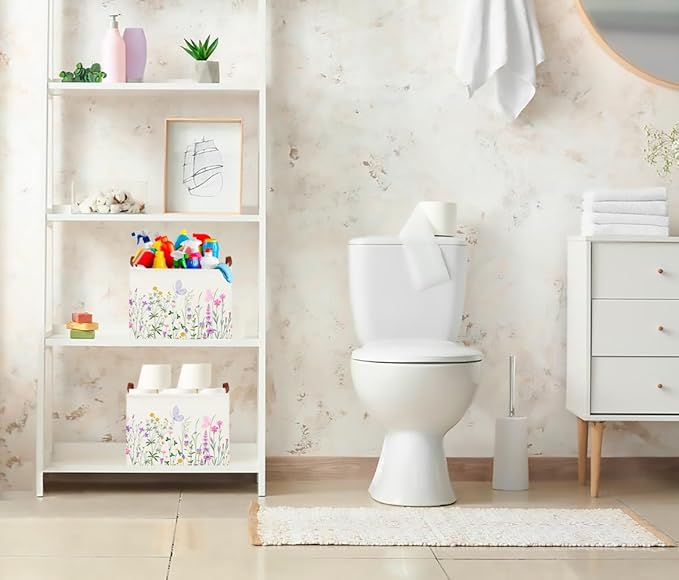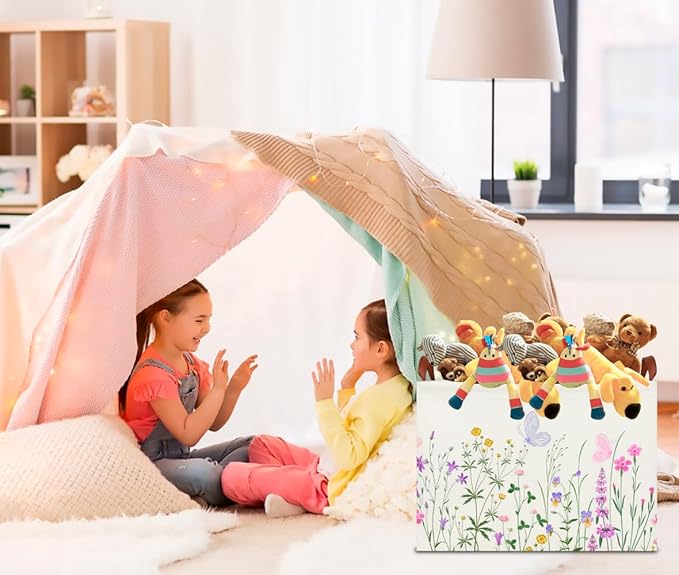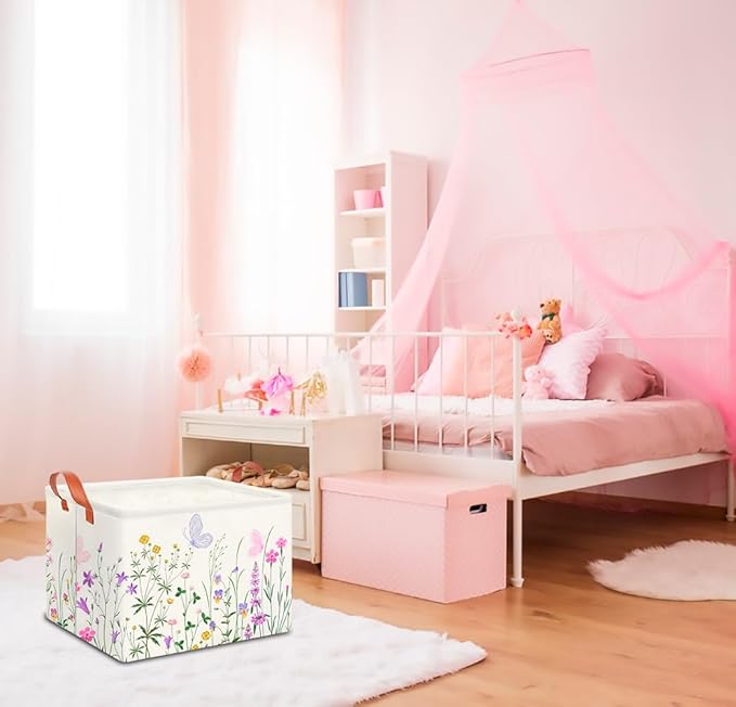 CLOCOR Rectangular Storage Basket Empty,Gift Basket,Waterproof Storage Bin with Handles,Room Decor(Flower)
