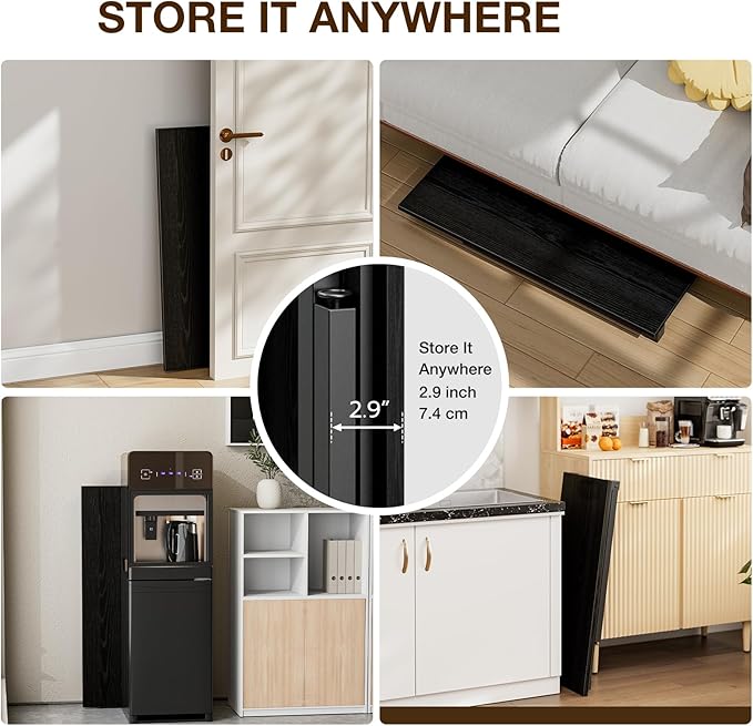 - πππ’π π£πππ§ ππ‘π πππ¦π¬ π§π’ π¦π§π’π₯π β When folded, this mini desk measures just 35.8" L x 15.7" W x 2.9" H. The small folding table design allows it to fit seamlessly behind doors, under beds, beside fridges, or in any other tight space, making it a great small computer desk for small spaces while keeping your room organized.