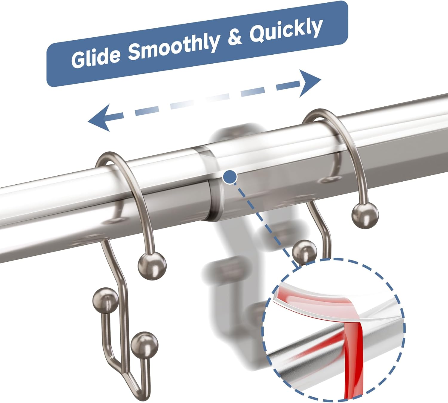 - Minimalist design - no ball bearing gliding, less jamming and noise annoyance. The minimalist shape shower hooks blend seamlessly into any bathroom style.