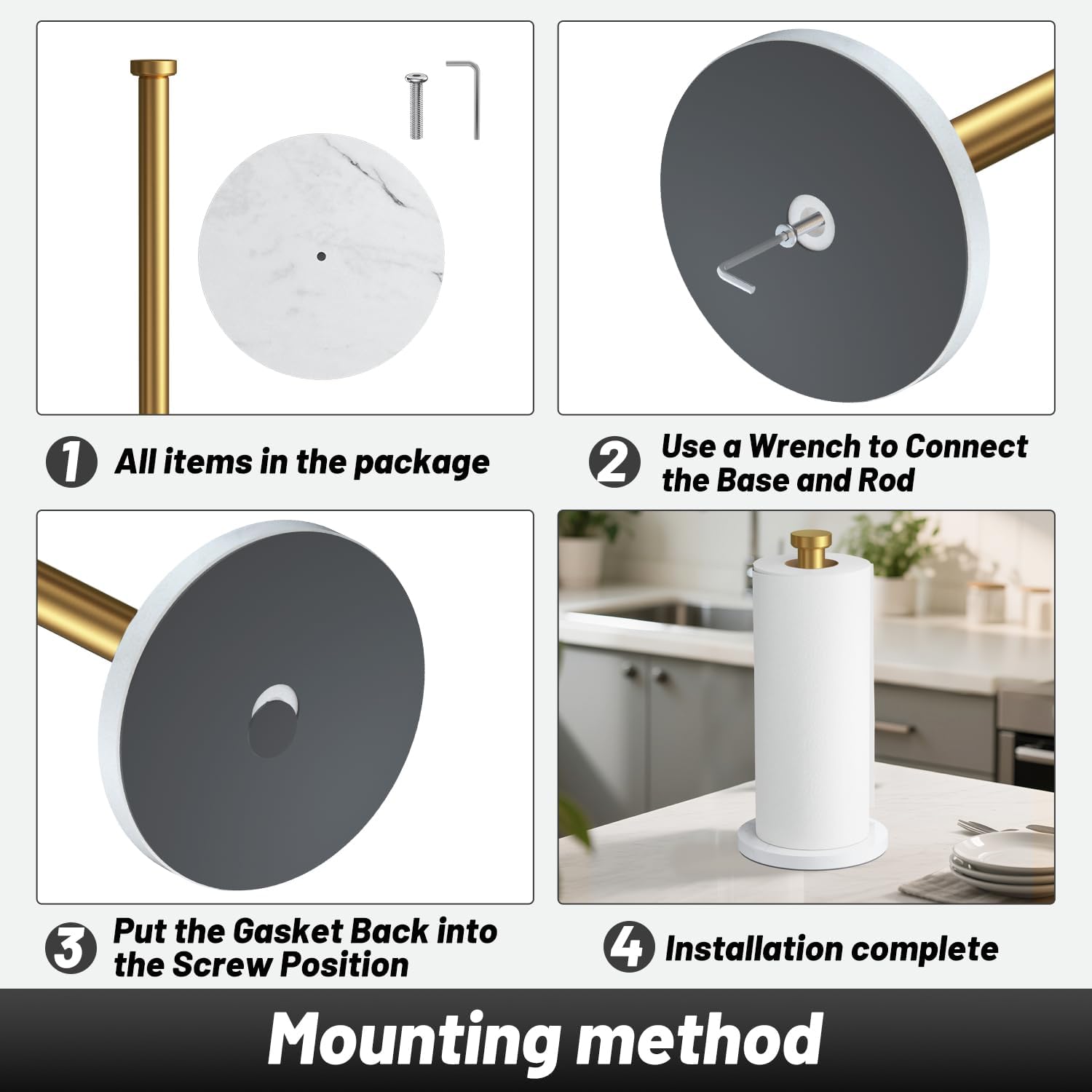 VEHHE Marble Paper Towel Holder for Kitchen Countertop, Standing Paper Towel Stand with Weighted Base & EVA Non-Slip Pad, for Bathroom or Kitchen (Gold)