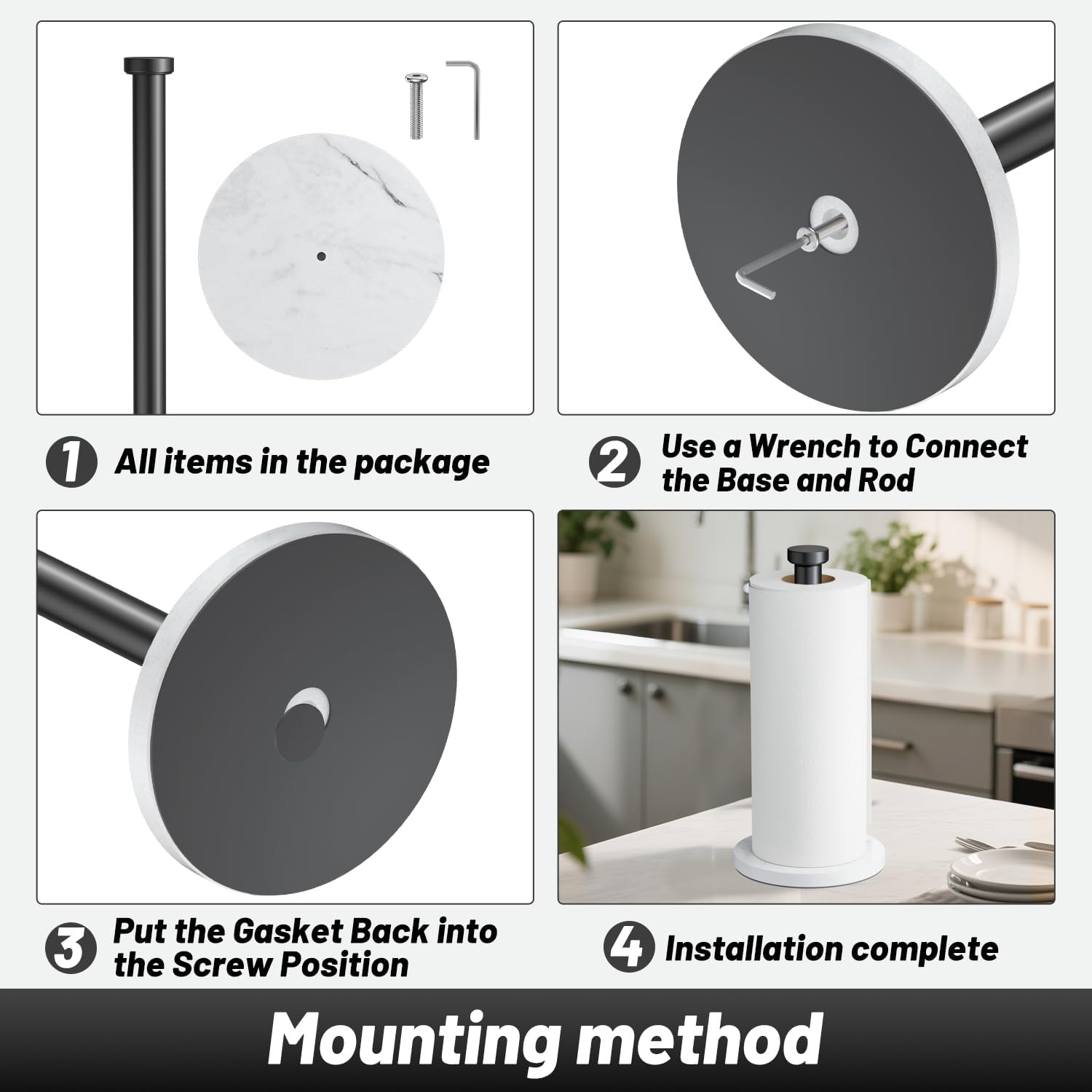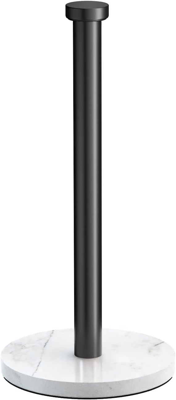 VEHHE Marble Paper Towel Holder for Kitchen Countertop, Standing Paper Towel Stand with Weighted Base & EVA Non-Slip Pad, for Bathroom or Kitchen (Black)