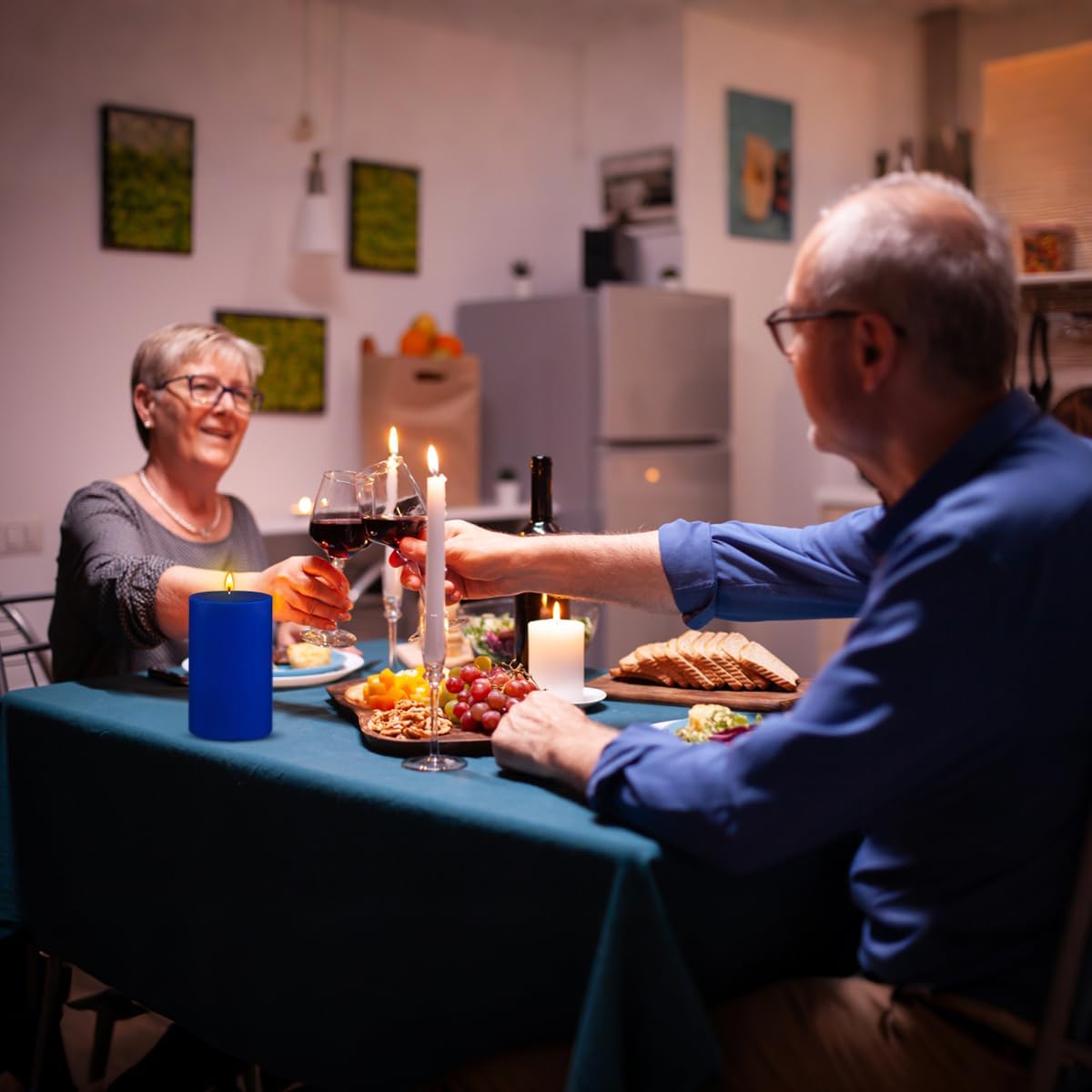 - Many Decorative Purposes: The scentless and elegant blue pillar candles are perfect for romantic dinners, emergency, power outages or simply to add warm light to a dark night.