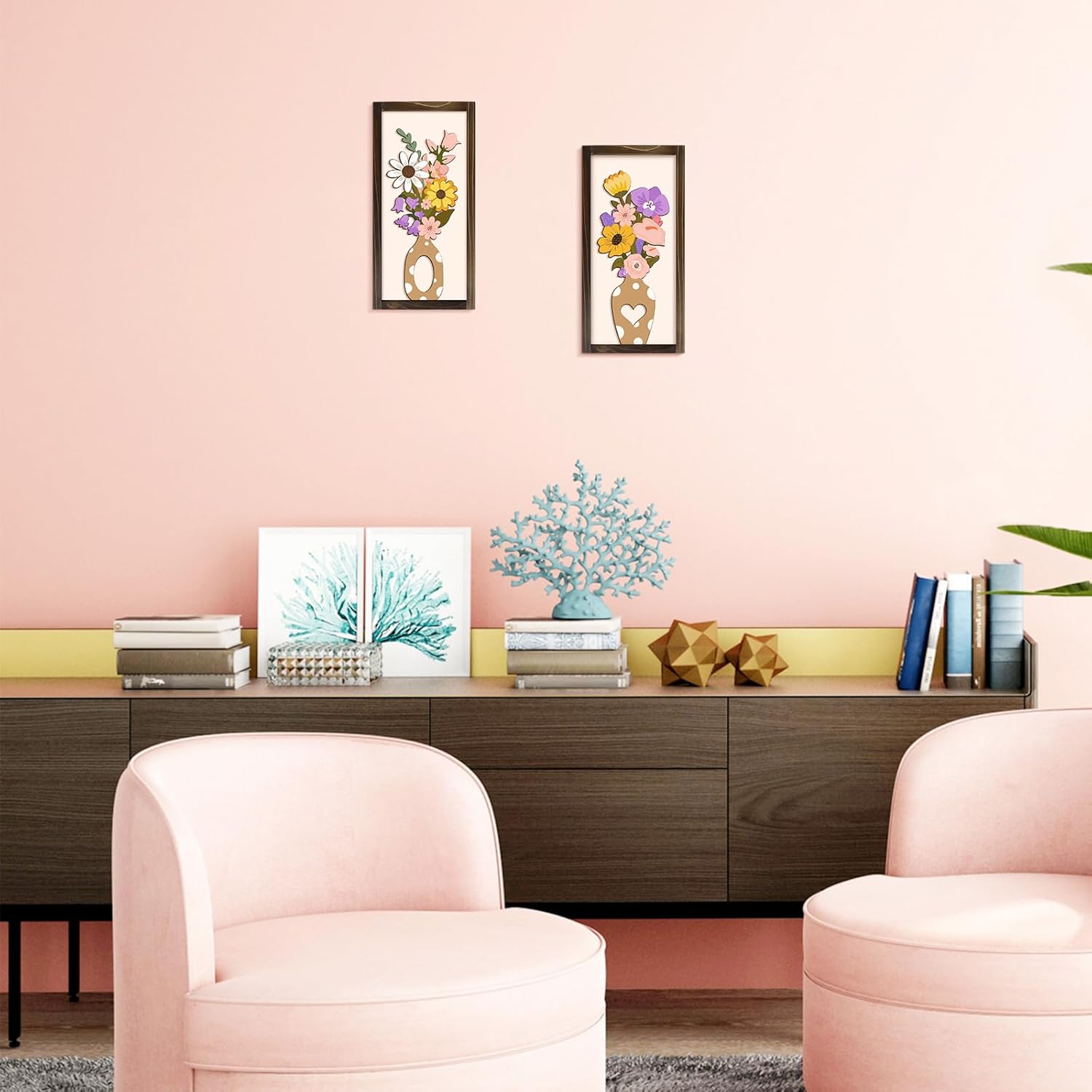 - Attractive 3D Design - Featuring a beautiful arrangement of colorful flowers and greenery leaves with vase, this wood wall art creates a striking 3D effect that brings your walls to life.