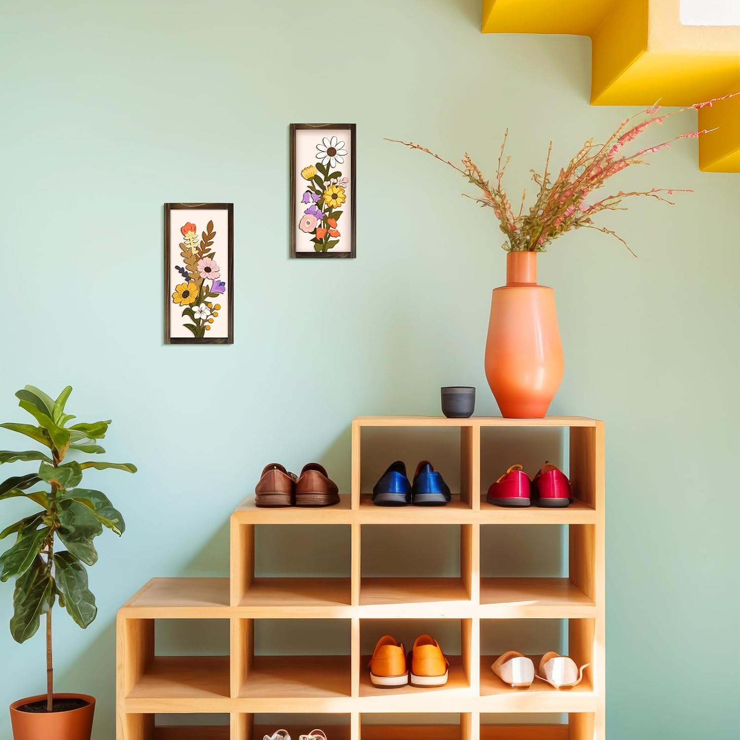 - Attractive 3D Design - Featuring a beautiful arrangement of colorful flowers and greenery leaves with vase, this wood wall art creates a striking 3D effect that brings your walls to life.