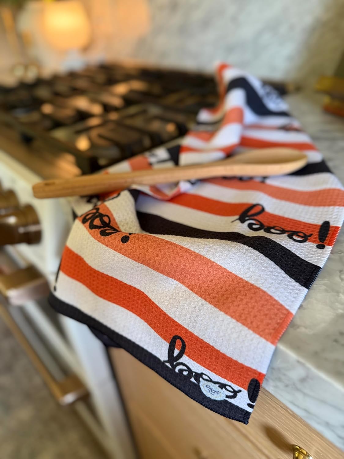 2 Pack || Double Sided|| Not Your Ordinary Kitchen Towels || Dish Towels || Quick Dry || Waffle Weave Microfiber || Designer Prints || Highly Absorbent || Hanging Hook (Halloween Boo)