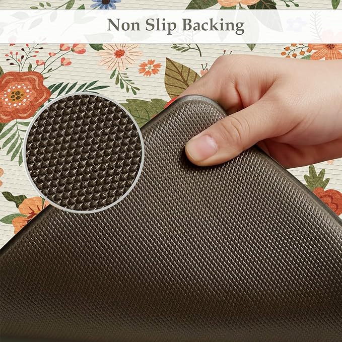 - Versatile:Floral style floor mats with colorful flower patterns easily to match your kitchen decor, bright your home.Soft thick foam provides ample support for standing in kitchen sink, laundry room, office, bathroom, dinning room, or any other high-traffic area