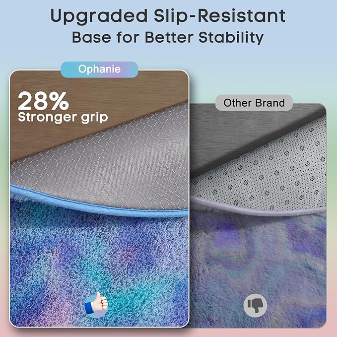 - Ultra Soft & Non-slip: Featuring a shaggy carpet surface, the Ophanie soft area rug is highly soft with a high-density sponge interlayer. This rug effectively reduces shedding, and the non-slip bottom with small, durable anti-slip dots enhances friction to prevent sliding.