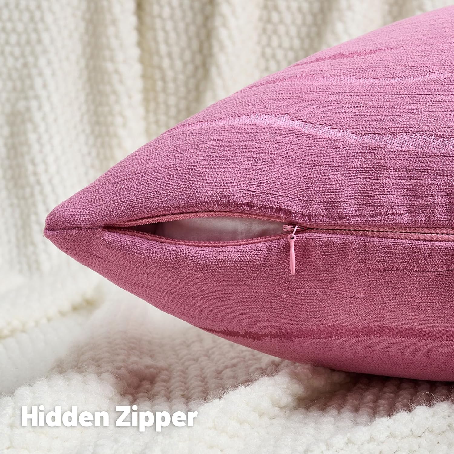 FUTEI Hot Pink Chenille Decorative Throw Pillow Covers 16x16 Inch Set of 2,Soft Embossed Striped Textured Cushion Case,Modern Home Decor for Couch Bed Living Room