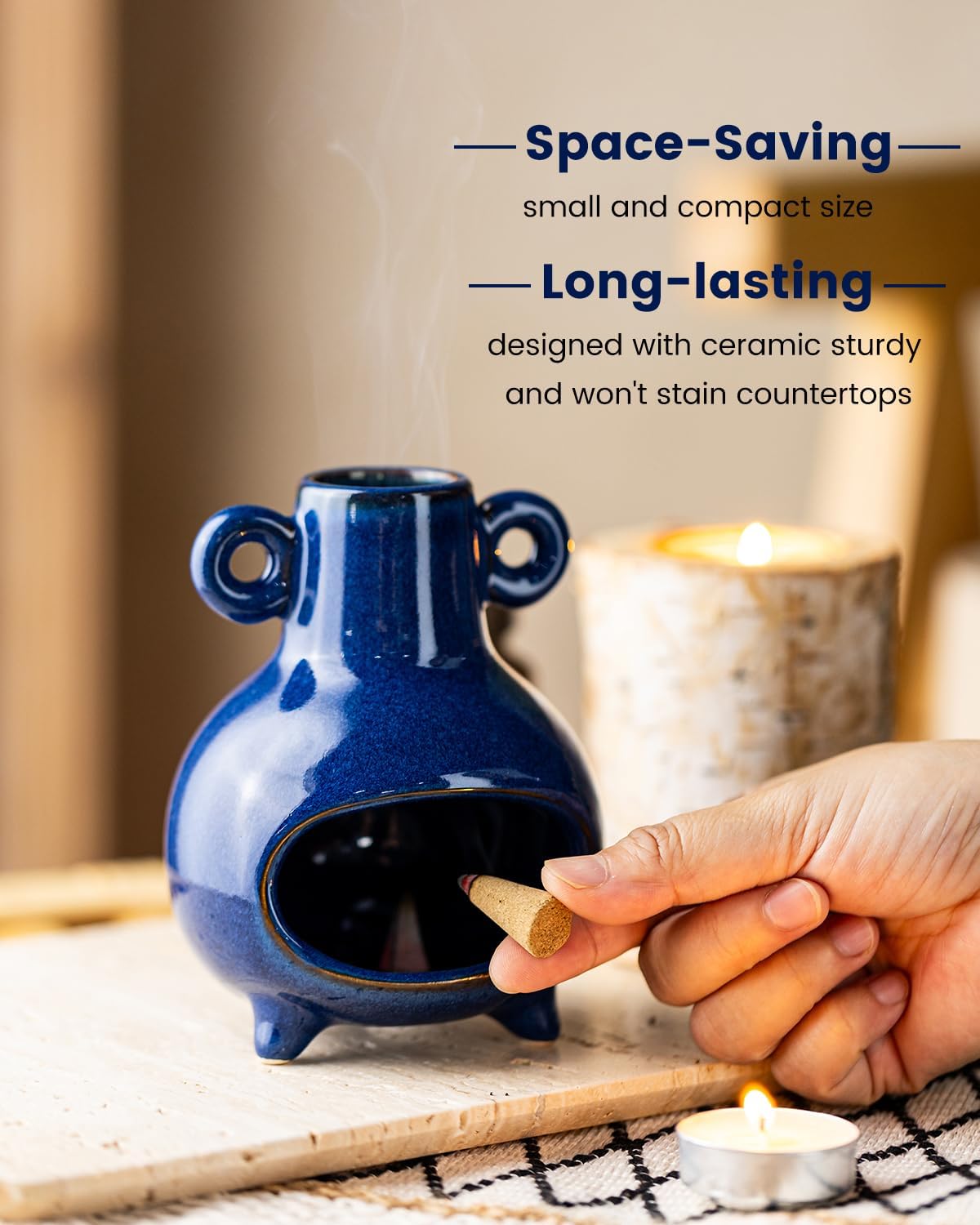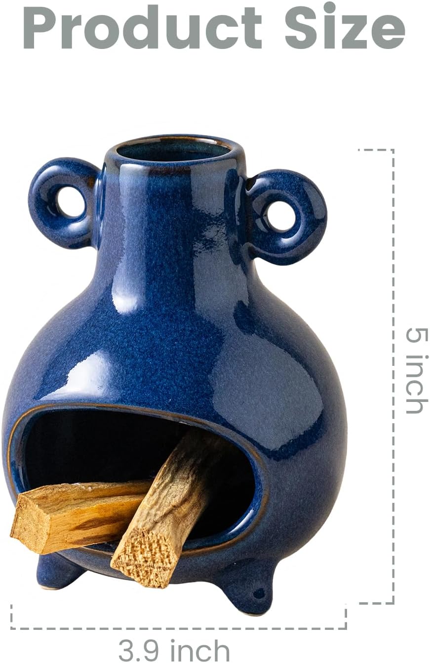 Handcrafted Palo Santo Holder, Incense Candle and Matchstick Mini Chiminea for Meditation Space, Wood Sticks and Bulk Incense, Blue