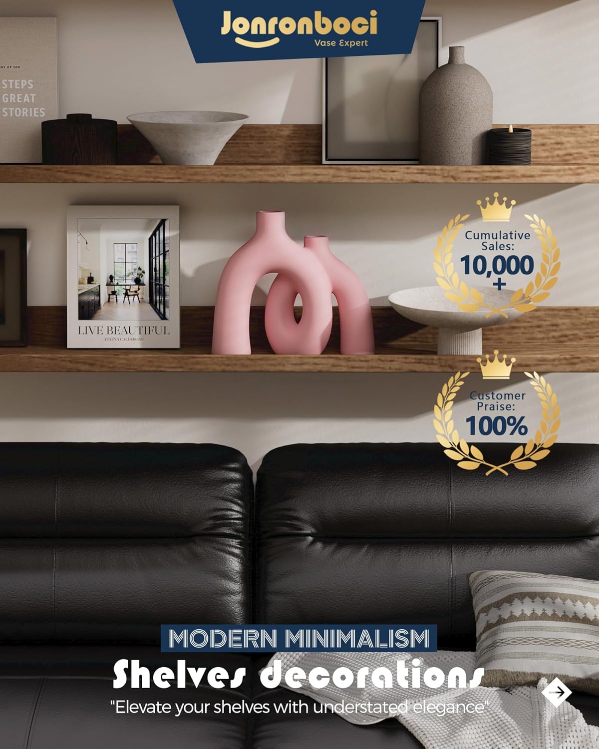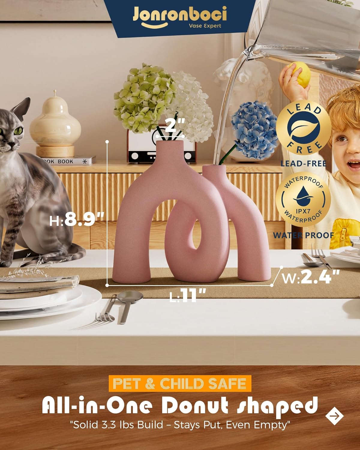 Hug Donut Decorative Vase Set - Light Pink Modern Glam Eclectic Style Vases Home Decor, Matte Ceramic Decorations for Living Room Shelf, Bookshelf Mantle Entryway Table or Console Décor(Pink)