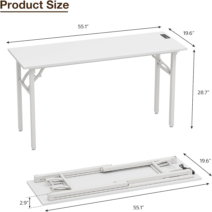 TEMI Long Computer Desk Folding Table - No Assembly, Compact 55.1" Foldable Desk with Power Outlets & USB Charging Port, Portable Lagre Office Desk, Ideal Large Study Table for Narrow Spaces