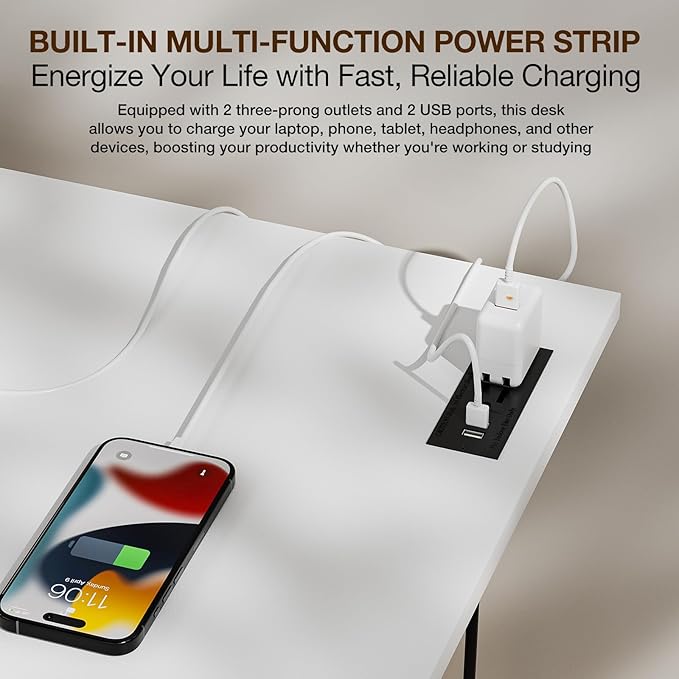 - ππ¨π¦π ππππ₯πππ‘π π£π’π₯π§π¦ & π£π’πͺππ₯ π’π¨π§πππ§π¦ β This L shaped gaming desk comes with a built-in power outlet, which provides 2 AC outlets and 2 USB ports. This desk streamlines device charging, ensuring both convenience and safety. Whether for gaming or intense work sessions, stay fully powered up without messing up your space with additional extension cords