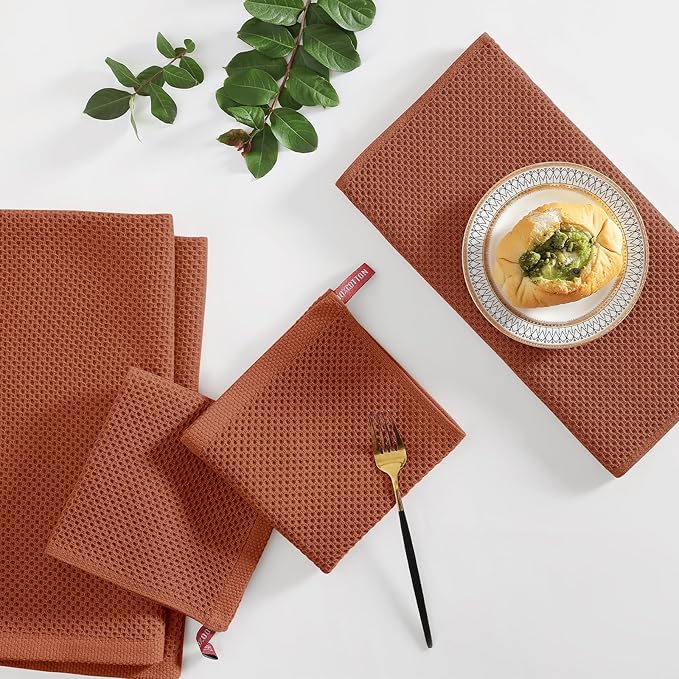 Homaxy 100% Cotton Kitchen Towels and Dishcloths Set, 12 x 12 Inches and 13 x 28 Inches, Set of 12 Bulk Kitchen Towels Set, Ultra Soft Absorbent Dish Cloths for Washing Dishes, Rust