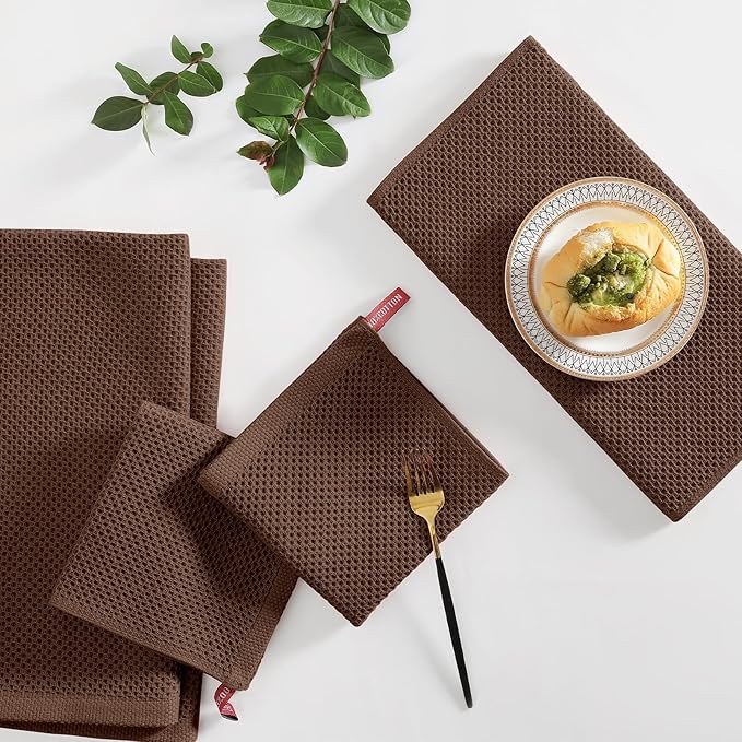 Homaxy 100% Cotton Kitchen Towels and Dishcloths Set, 12 x 12 Inches and 13 x 28 Inches, Set of 10 Bulk Kitchen Towels Set, Ultra Soft Absorbent Dish Cloths for Washing Dishes, Coffee