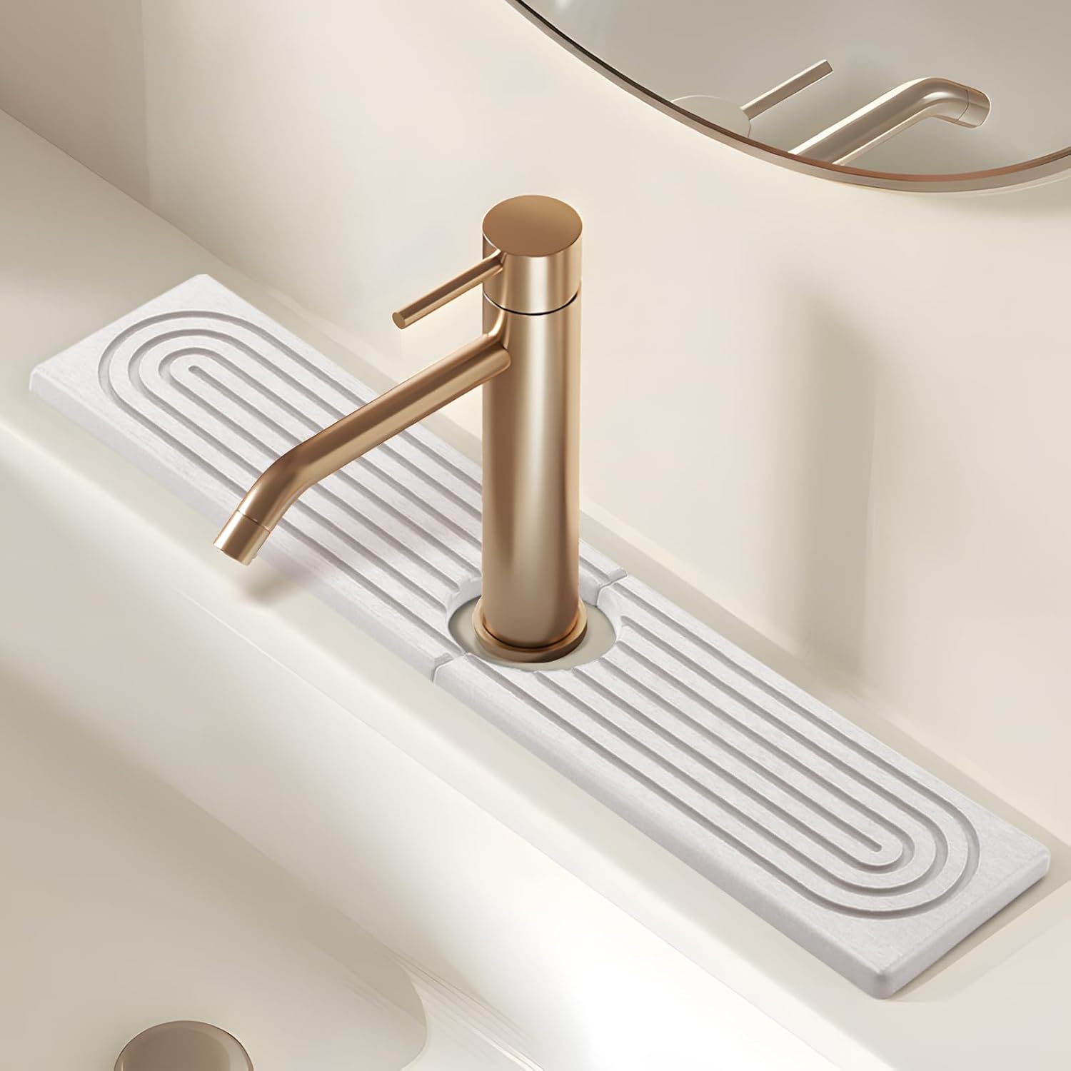 Kitchen Sink Faucet Mat, Super Absorbent Diatomaceous Earth Kitchen Sink Mat Prevents Water Pooling in Sinks, Sink Splash Guard for Kitchen Bathroom Keeps Counrtops Dry (White)
