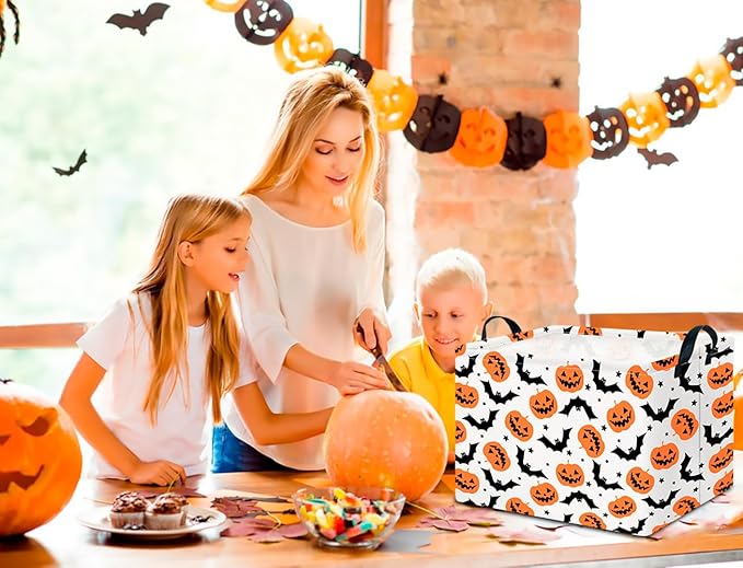 CLOCOR Rectangular Storage Basket Empty, Gift Basket for Halloween, Waterproof Storage Bin with Handles, Room Decor(Bat Pumpkin Halloween)